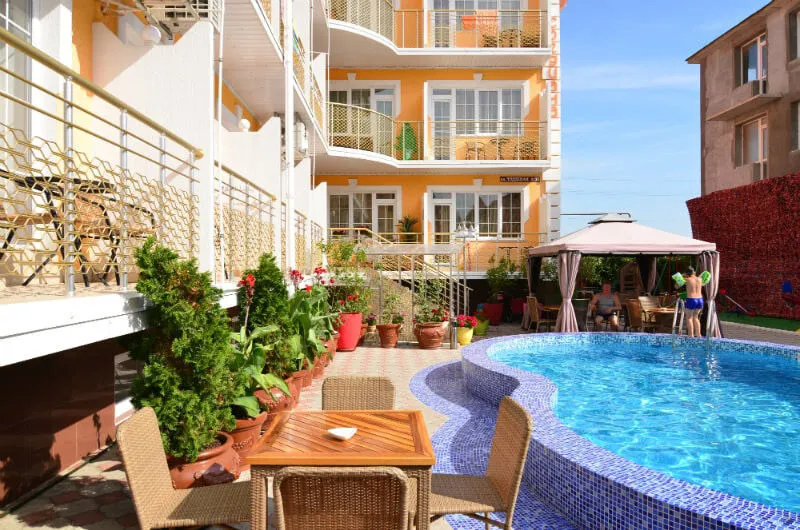 Тип бассейна: открытый бассейнВода в бассейне: подогреваемый бассейнРядом с бассейном: шезлонги, зонтикиТемпература в бассейне: 27 °CРазмеры: 5 x 7 мПлощадь: 35 м²Бассейн работает сезонно: с 01.05 по 25.10.