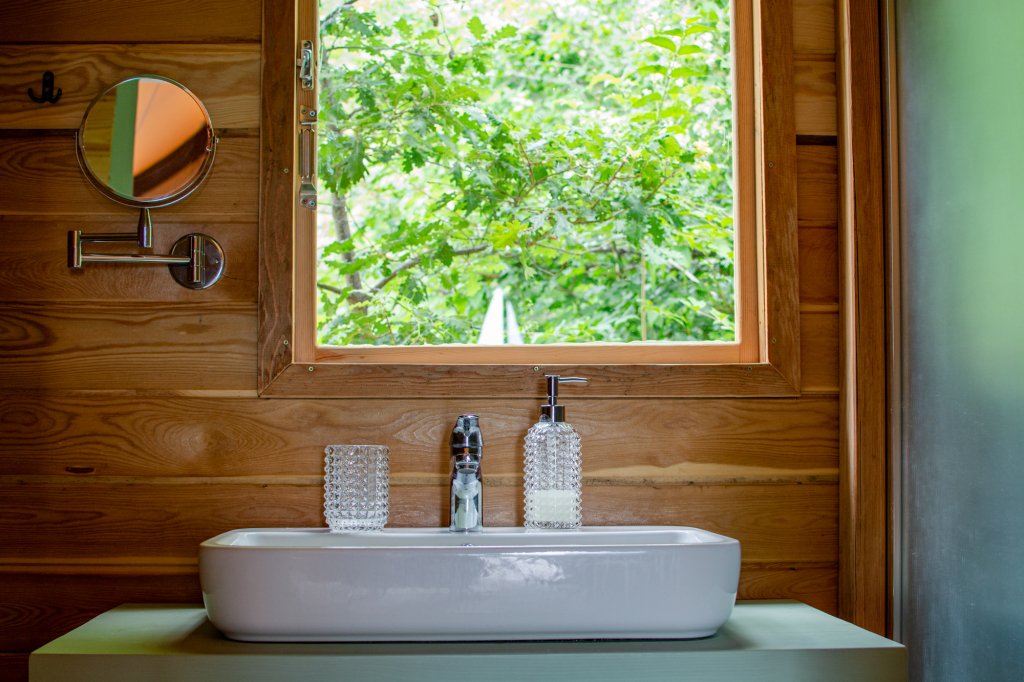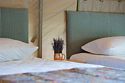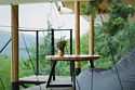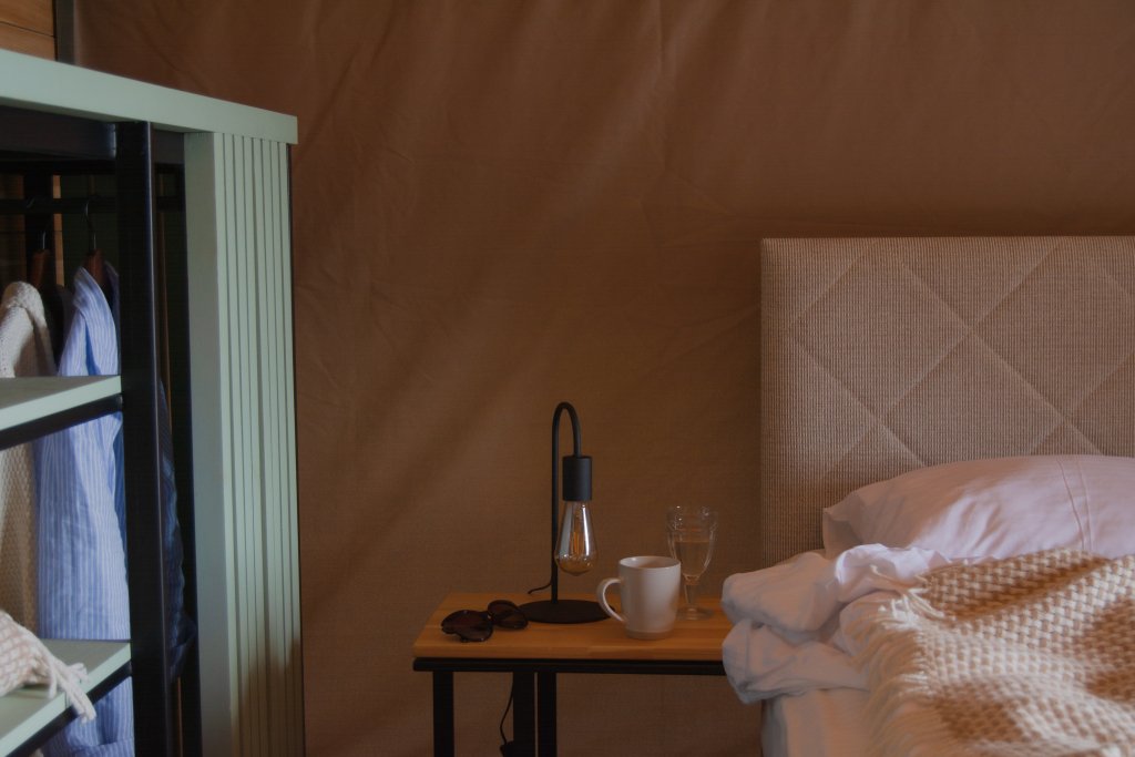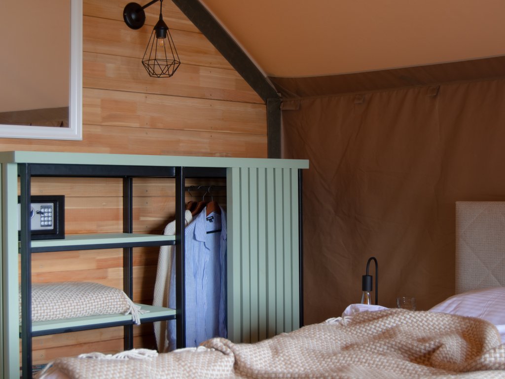 В глэмпинге имеется сафари-тент площадью 21 кв.м. Для удобства гостей в каждом глэмпе есть две односпальные кровати или одна двуспальная кровать. Имеется возможность установить дополнительные кровати для детей. В распоряжении гостей есть собственная терраса с креслами и видом на долину, душ с горячей водой, туалет, умывальник, электричество и Wi-fi. В ресторанчике глэмпинга гости могут заказать завтрак, обед или ужин по меню.