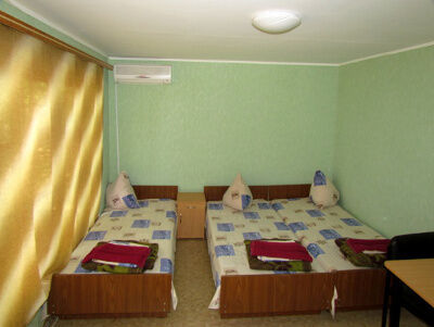 Комплектация номеров: кондиционер, телевизор (кабельное телевидение), холодильник, туалет и душ с горячей водой.