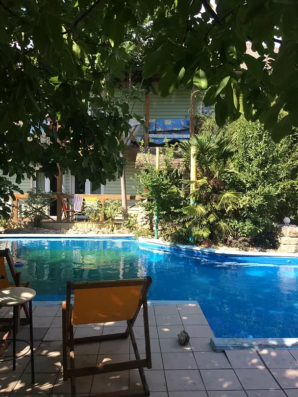 Отель предлагает своим гостям открытый бассейн, пользование общей кухней, близость к пляжу и уютное кафе с вкусными блюдами в духе советского времени.