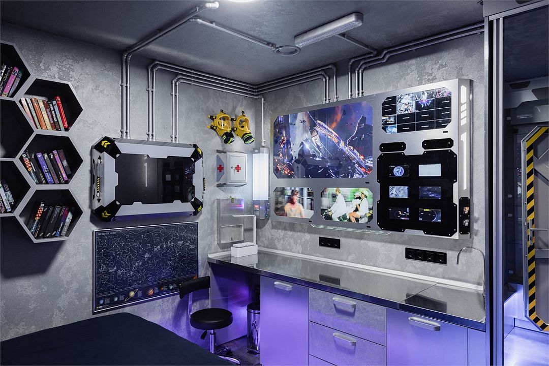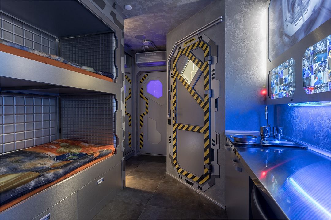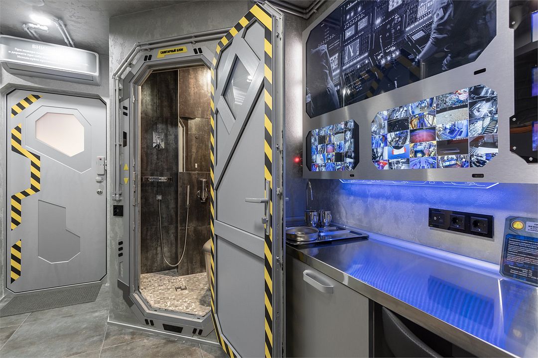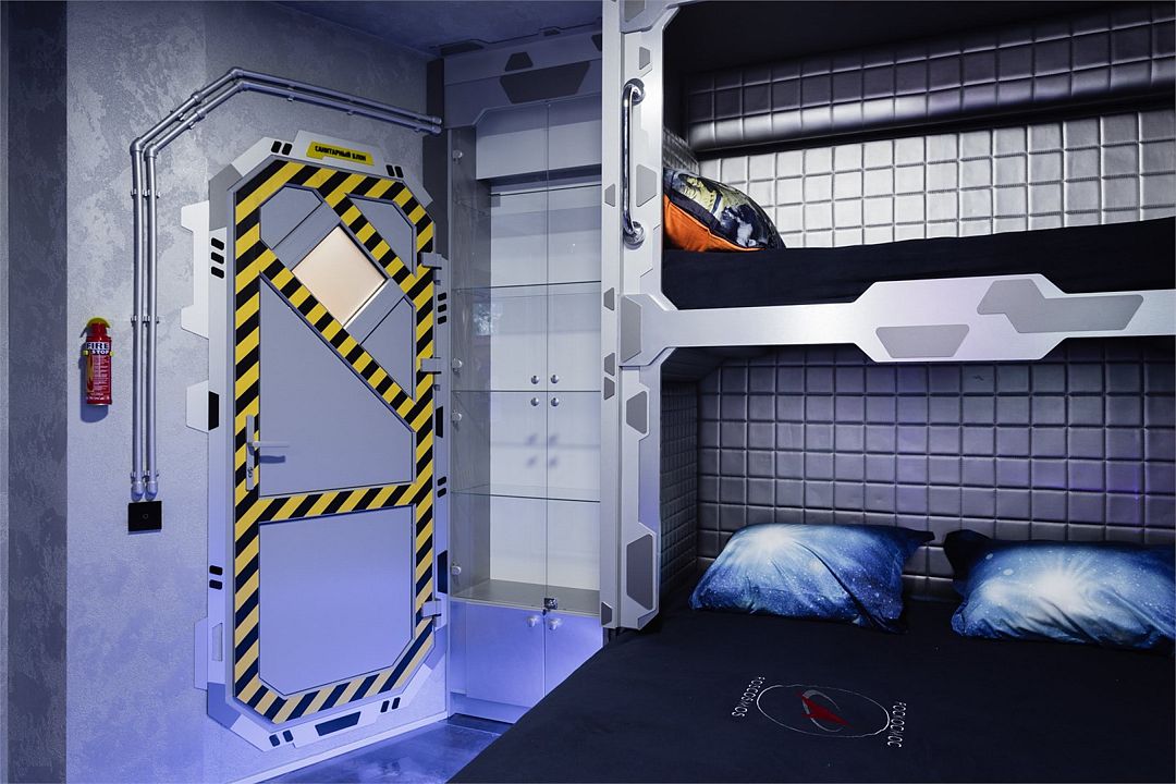 Комфортабельные и уютные каюты для полноценного погружения в атмосферу космических приключений. Двухместные каюты, в каждой из которых собственная душевая и туалет, удобные кровати, стол, интерактивные мониторы и небольшая библиотека отечественной и зарубежной фантастики. Система кондиционирования, вентиляции и отопления ( по сезону). Каюты без окон. В цену проживания включен легкий завтрак, включающий в себя сэндвич, кофе, чай на выбор, так же экскурсия по научно-развлекательному центру.Услуги и удобства