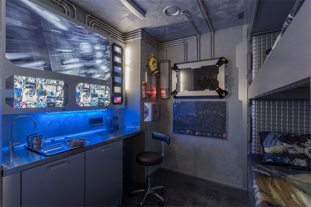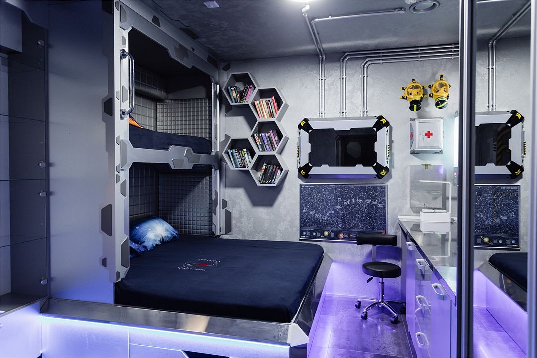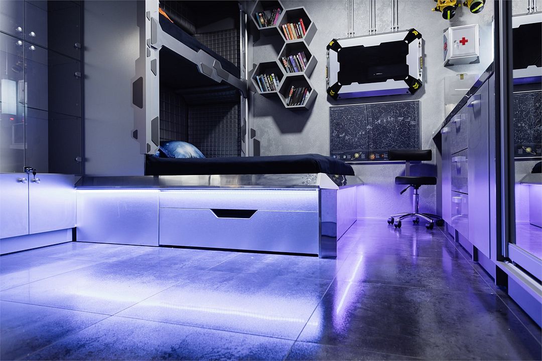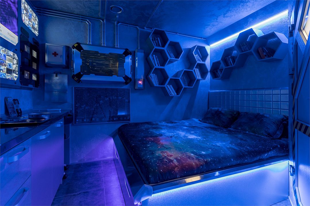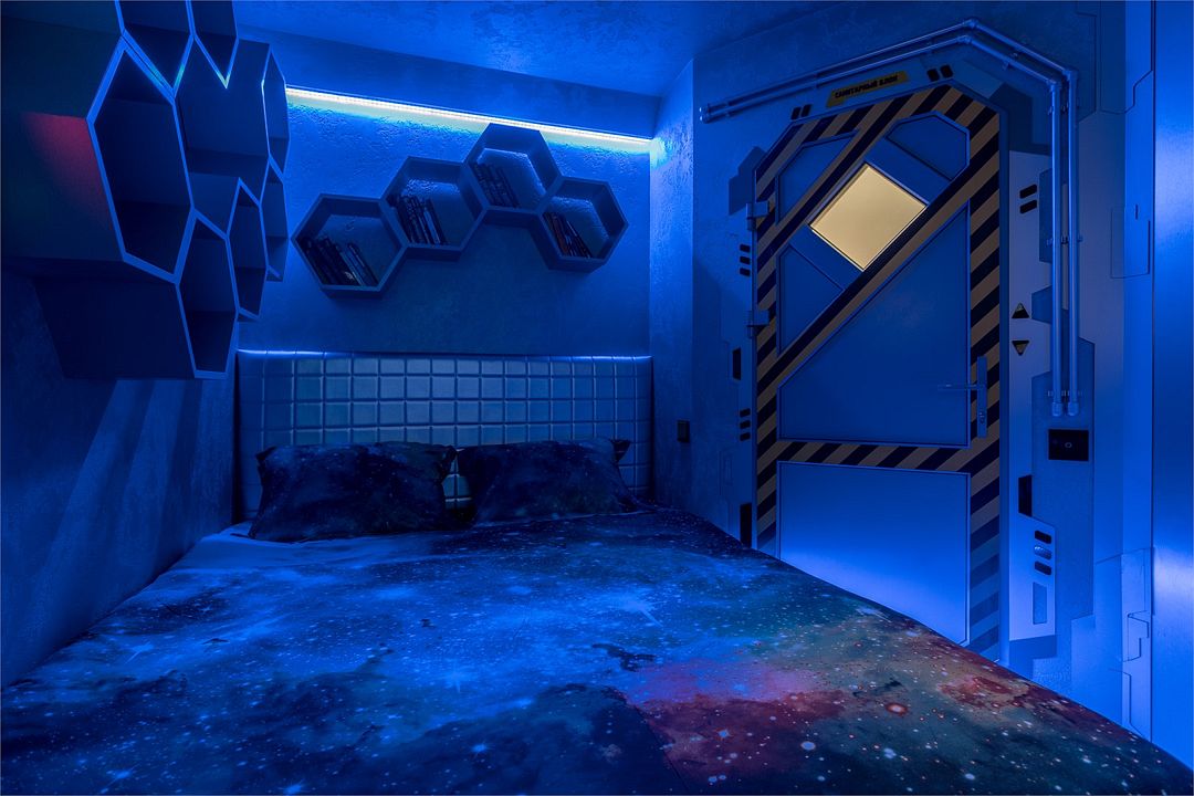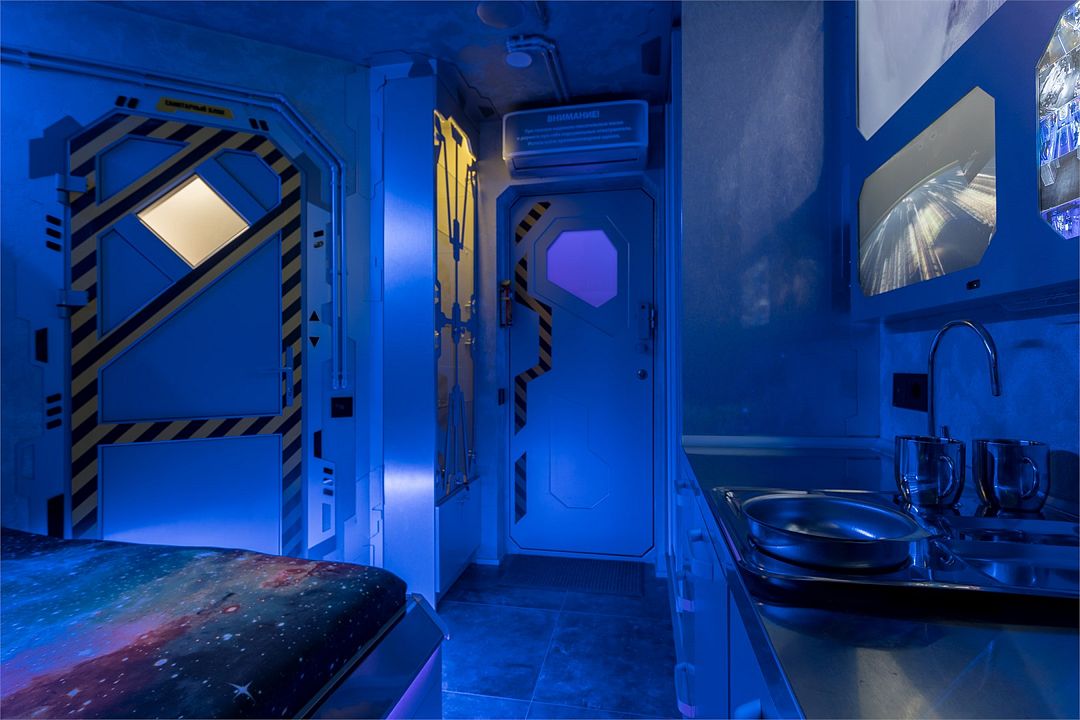Комфортабельные и уютные каюты для полноценного погружения в атмосферу космических приключений. Трёхместные каюты, в каждой из которых собственная душевая и туалет, удобные кровати, стол, интерактивные мониторы и небольшая библиотека отечественной и зарубежной фантастики. Система кондиционирования, вентиляции и отопления ( по сезону). Каюты без окон. В цену проживания включен легкий завтрак, включающий в себя сэндвич, кофе, чай на выбор, так же экскурсия по научно-развлекательному центру.Услуги и удобства