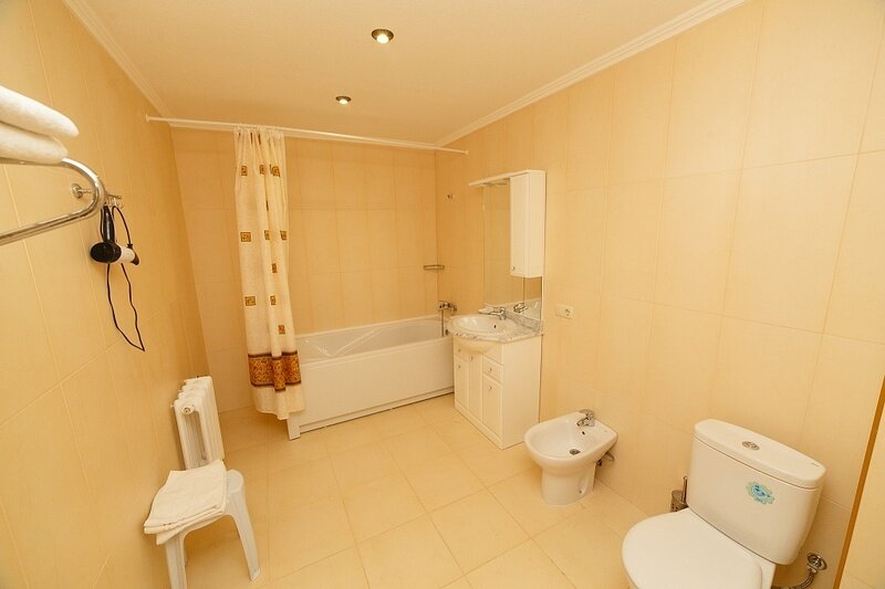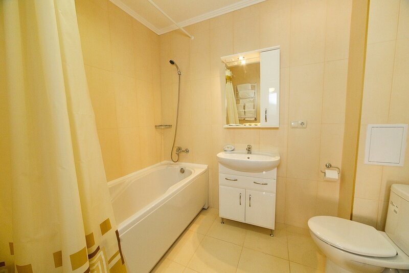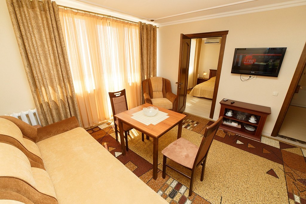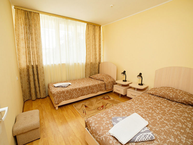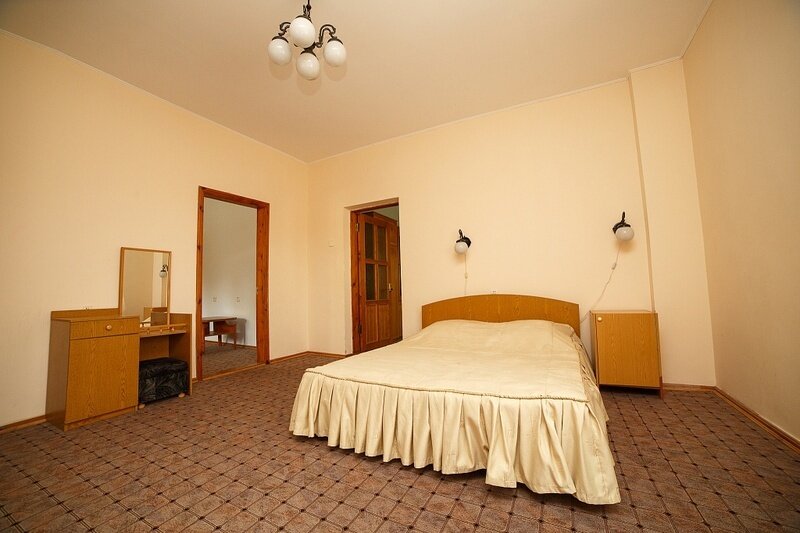 ДостоинстваМоя семья приехала сюда сама, на машине. Парковка тут платная. Заселение прошло без казусов, разрешили нам выбрать этаж. В питании был большой ассортимент, было предельно вкусно, по-домашнему. Не было времени голодать, потому что ели три раза в день. В номере нашли всё, что было заявлено. Утюг можно было взять у администрации. Пляж с морем потрясающие. Полотенца выдавали в санатории!