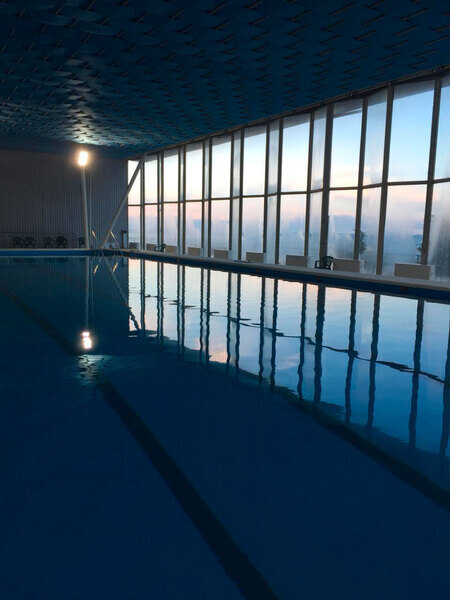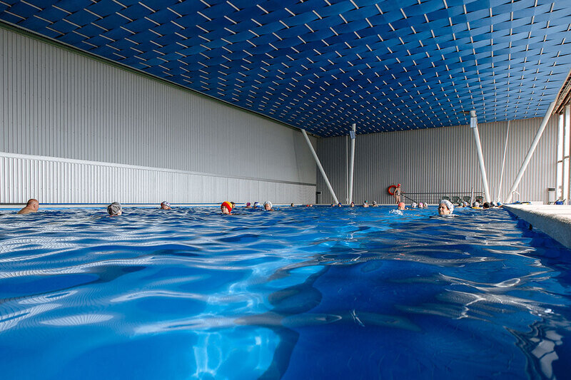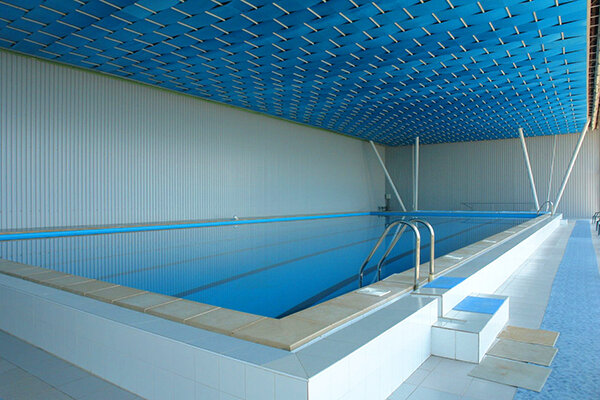 Закрытый плавательный бассейн находится в отдельно стоящем здании. Технические особенности бассейна позволяют проводить учебные тренировки и спортивные соревнования. В здании бассейна находятся сауна, душ Шарко и циркулярный душ.