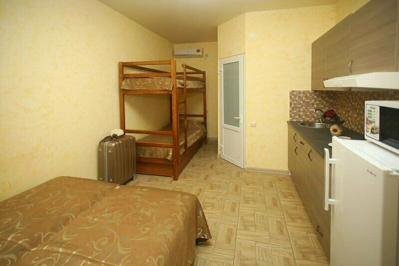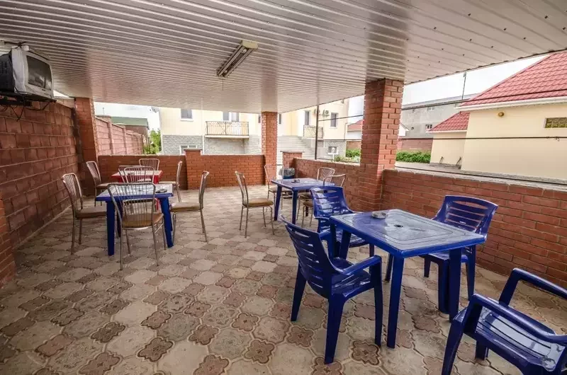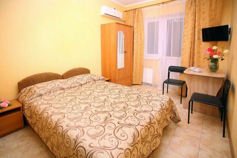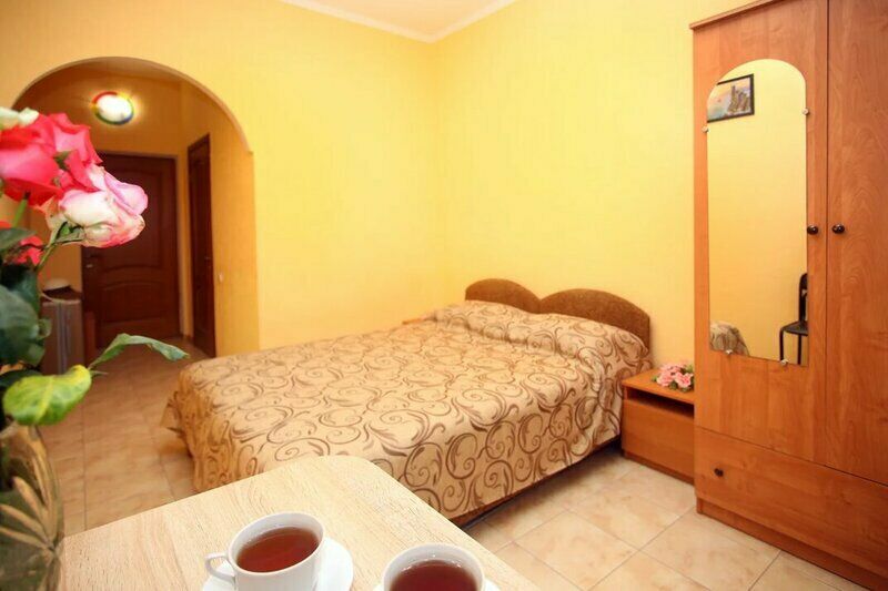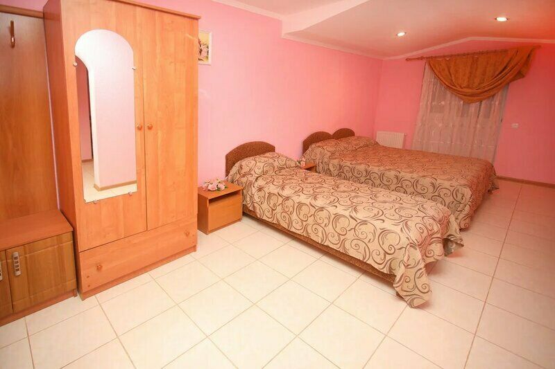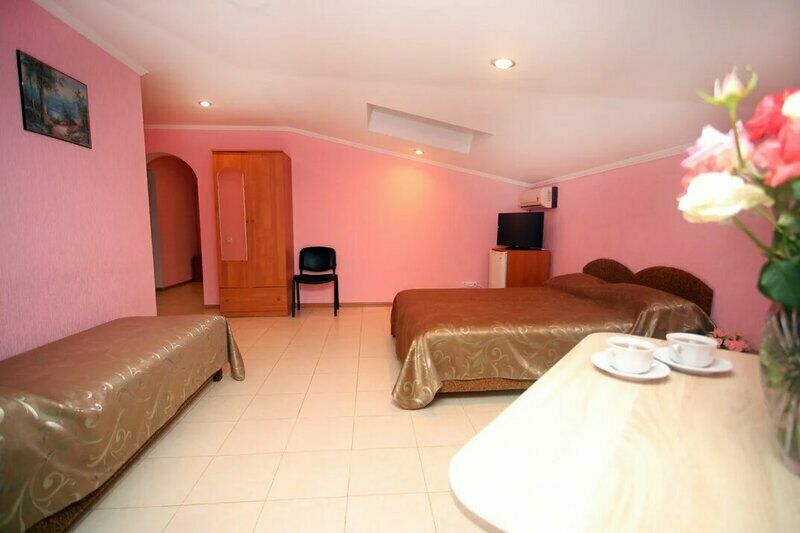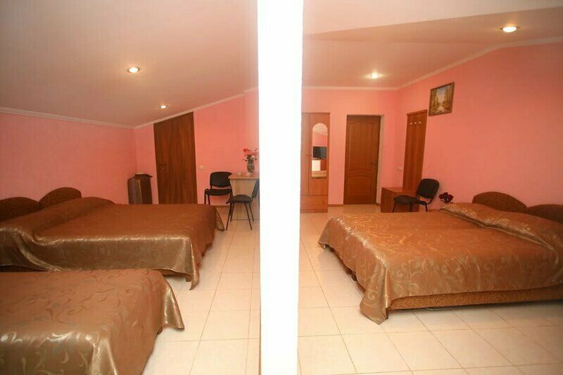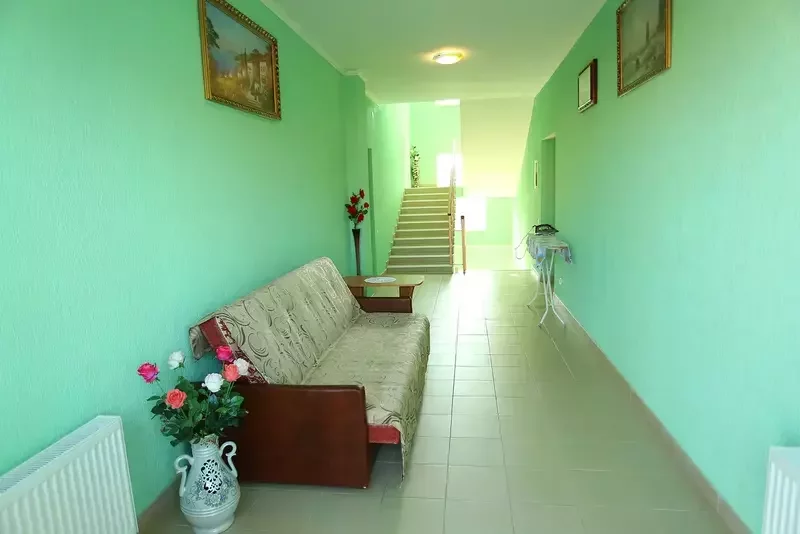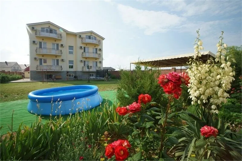 Проживание в 4-х этажном каменном строении построенное в 2008 году, из современных материалов. Двор огорожен. 19 меблированных комнат 2-х, 3-х, 4-х местных с удобствами по евро стандартам, с выходом каждой комнаты на отдельный балкон. С балконов открывается прекрасный вид на море. Современная мебель и новая сантехника (2008 г.). В комнатах чистое постельное белье, полотенца, комнаты убираются горничной. Вся территория гостевого дома высажена зеленью, кустами и цветами. Есть отдельно газон (как на футбольном поле) для отдыха.