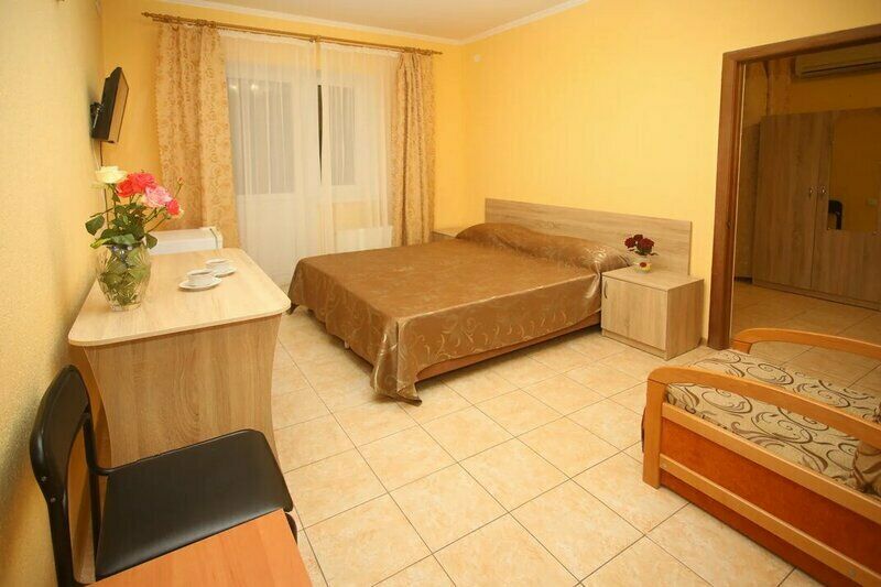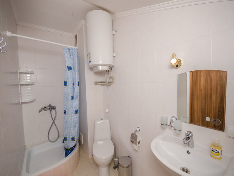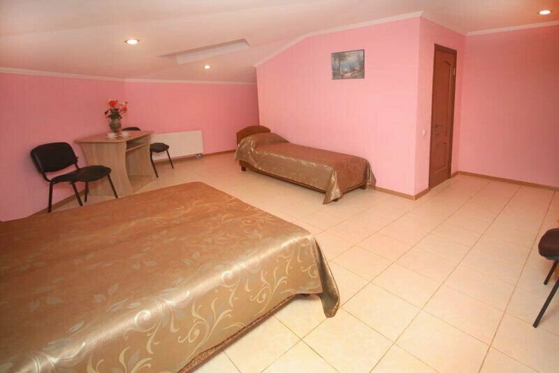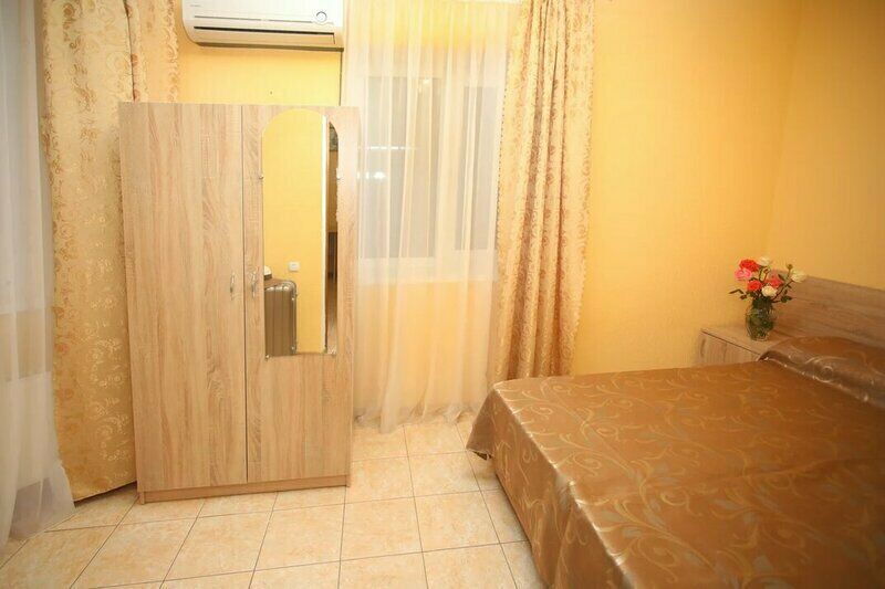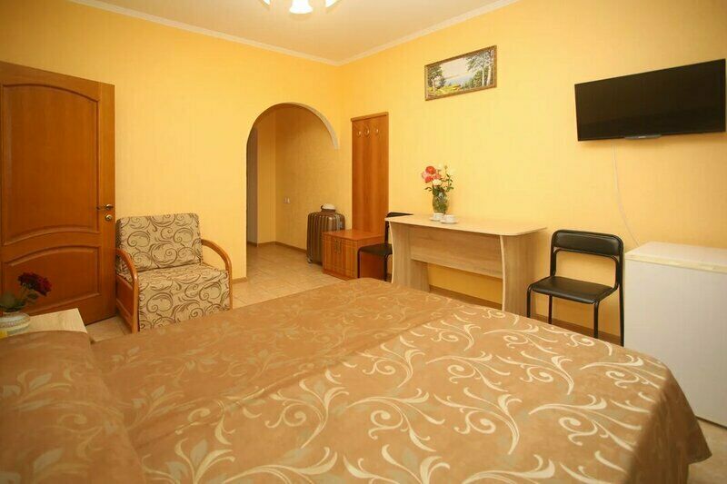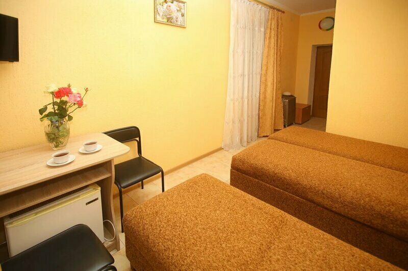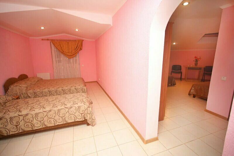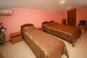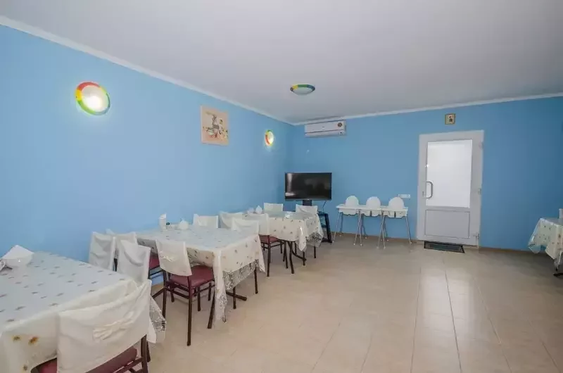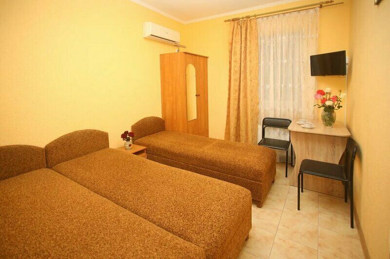 Проживание в 4-х этажном каменном строении построенное в 2008 году, из современных материалов. Двор огорожен. 19 меблированных комнат 2-х, 3-х, 4-х местных с удобствами по евро стандартам, с выходом каждой комнаты на отдельный балкон. С балконов открывается прекрасный вид на море. Современная мебель и новая сантехника (2008 г.). В комнатах чистое постельное белье, полотенца, комнаты убираются горничной. Вся территория гостевого дома высажена зеленью, кустами и цветами. Есть отдельно газон (как на футбольном поле) для отдыха.