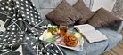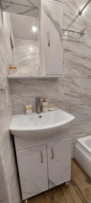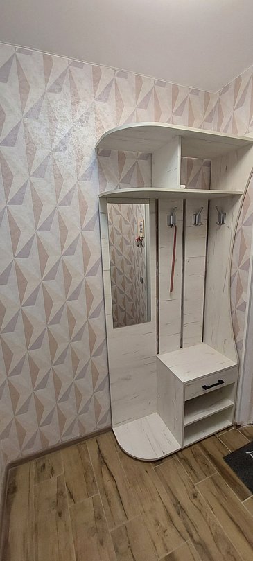 Кухня-гостиная: варочная поверхность, микроволновка, чайник, холодильник, вся посуда, столовые приборы, кофе/чай, соль/сахар/специи. Даже если у Вас позднее заселение и Вы не успели заскочить в магазин, мы не оставим Вас голодными — в холодильнике будут ждать пельмени.