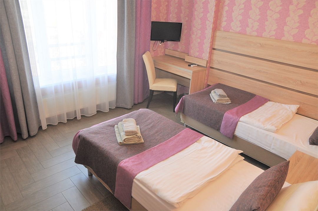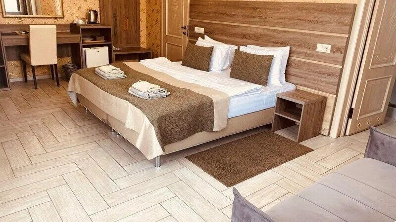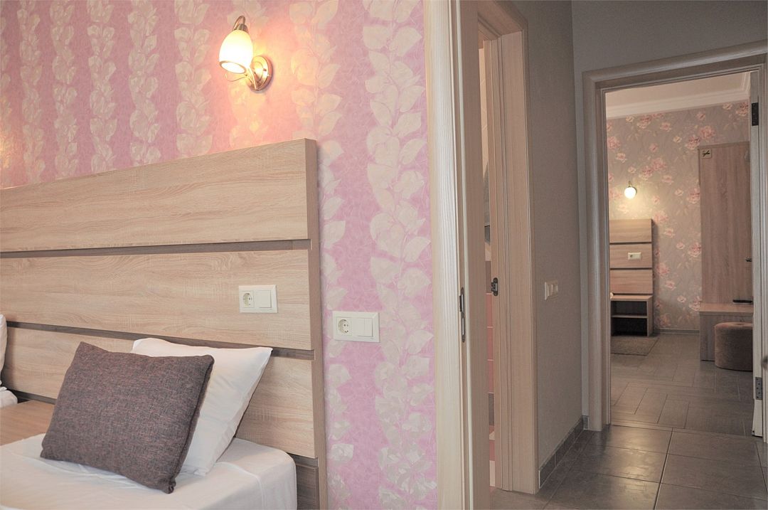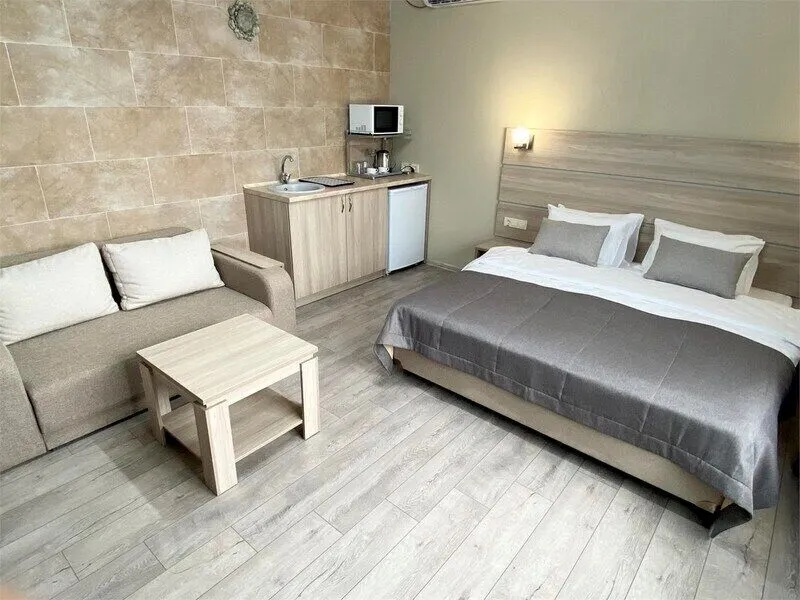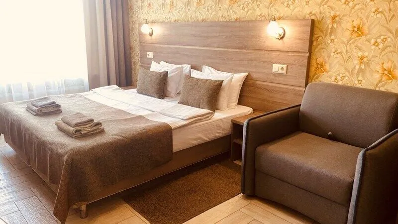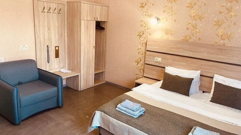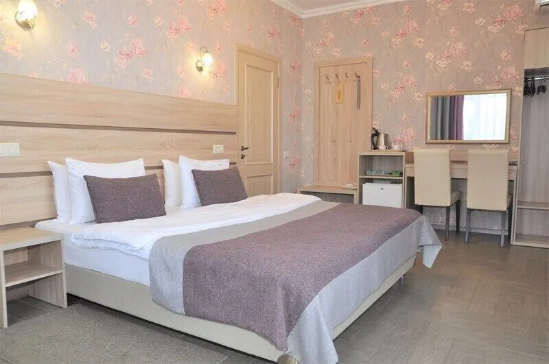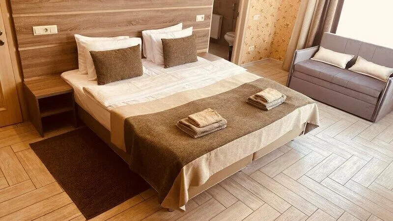 В четырехэтажном здании отеля – всего 14 двухместных номеров, но уровень сервиса не оставит гостей равнодушными. В заботе об отдыхающих номера укомплектованы эргономичной мебелью, на кроватях – латексные ортопедические матрасы, на окнах – блокирующие свет шторы «блэкаут». В номерах есть кондиционер и холодильник, телевизор и сейф, а ванные комнаты с душем и круглосуточно подаваемой горячей водой оборудованы феном. В холодный период включается отопление. На всех площадках доступен интернет (wi-fi). К услугам гостей – сауна и дубовая купель, электрочайник и пляжное полотенце, прачечная самообслуживания и бесплатный прокат утюга, охраняемая автостоянка и банкомат.