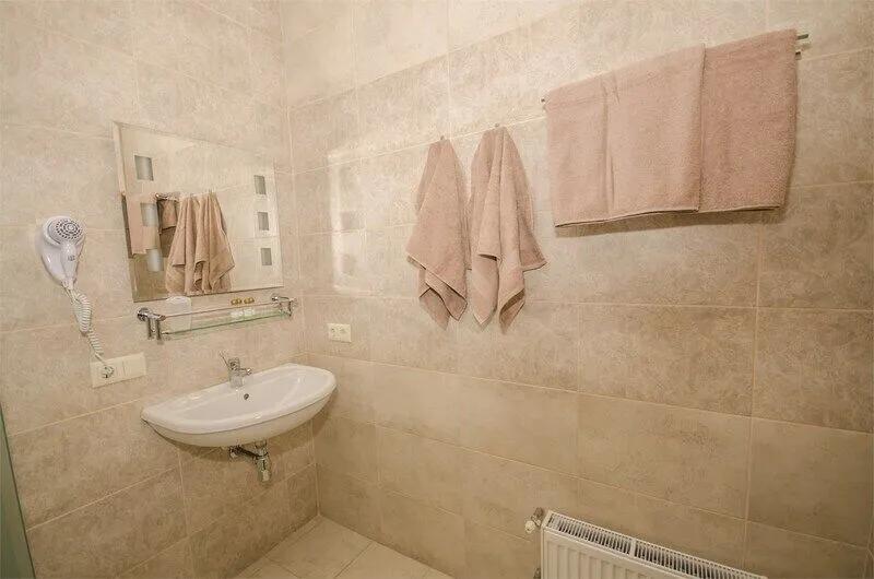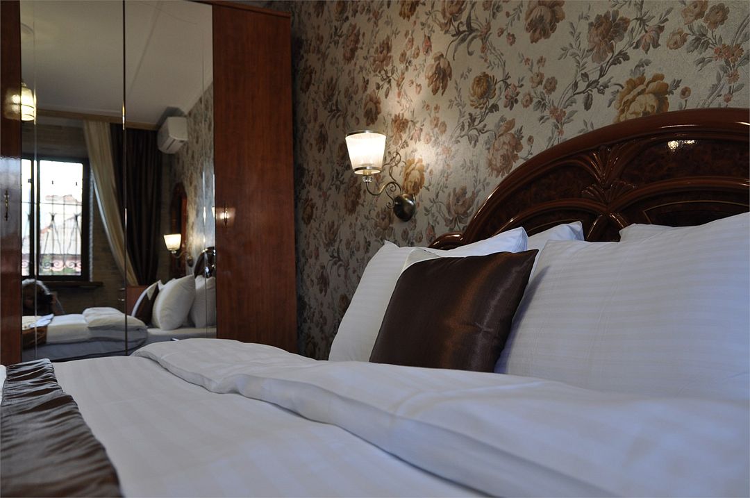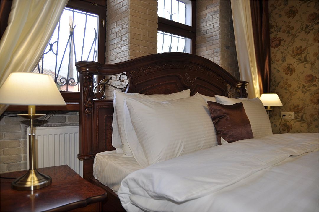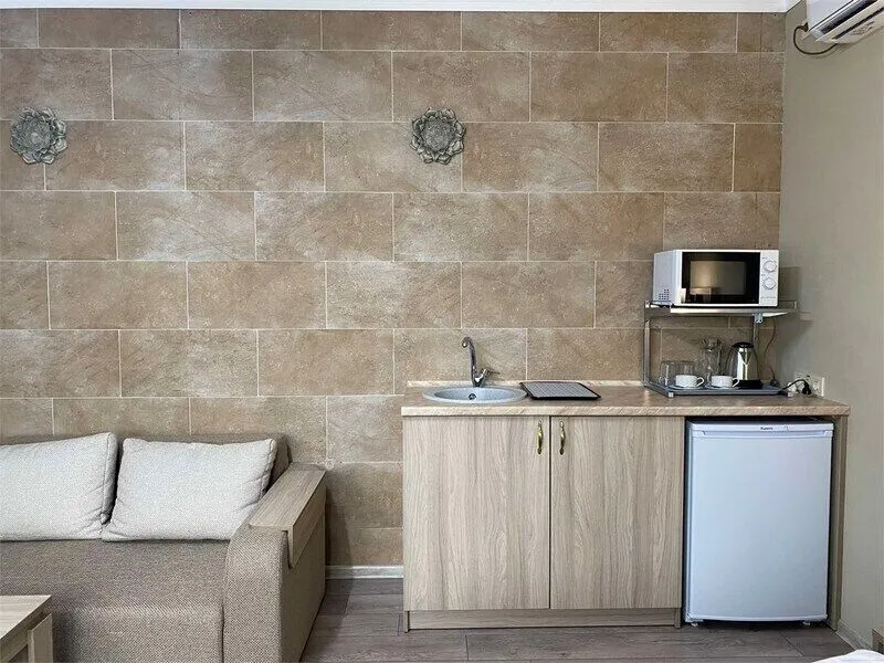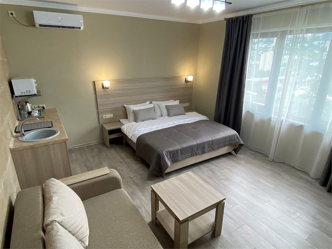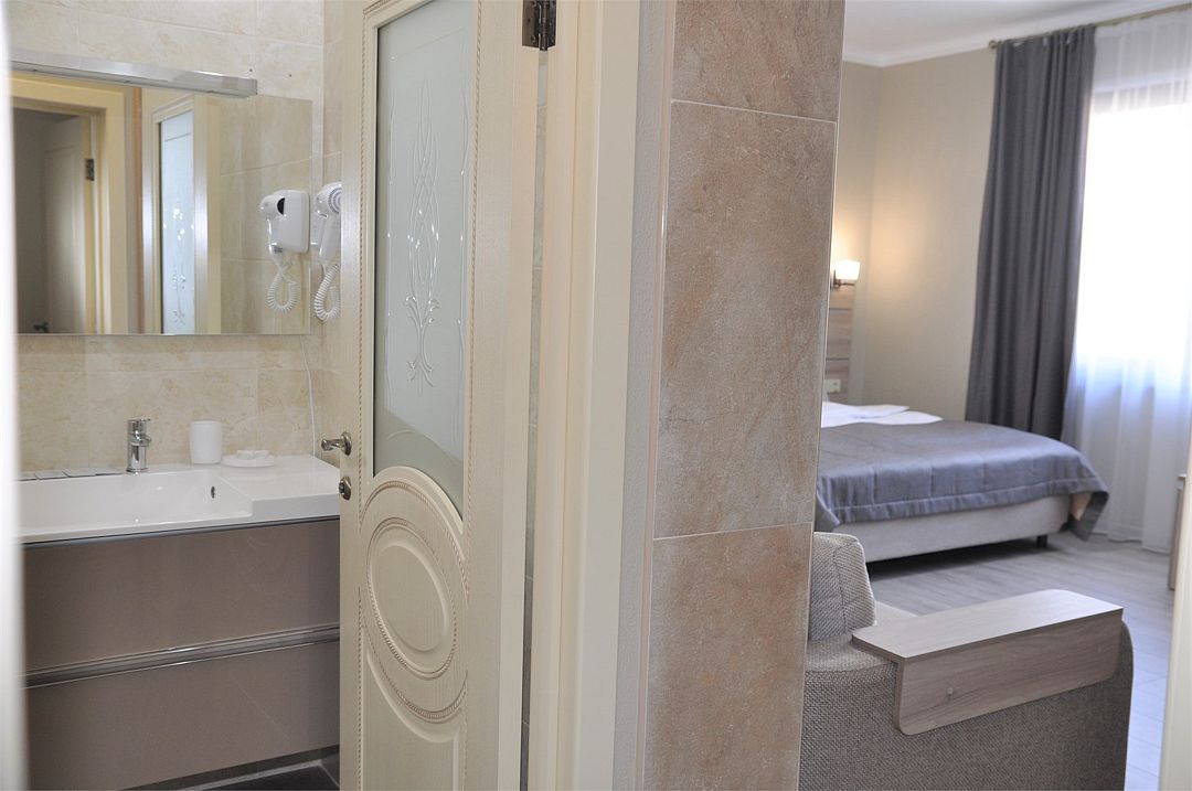В четырехэтажном здании отеля – всего 14 двухместных номеров, но уровень сервиса не оставит гостей равнодушными. В заботе об отдыхающих номера укомплектованы эргономичной мебелью, на кроватях – латексные ортопедические матрасы, на окнах – блокирующие свет шторы «блэкаут». В номерах есть кондиционер и холодильник, телевизор и сейф, а ванные комнаты с душем и круглосуточно подаваемой горячей водой оборудованы феном. В холодный период включается отопление. На всех площадках доступен интернет (wi-fi). К услугам гостей – сауна и дубовая купель, электрочайник и пляжное полотенце, прачечная самообслуживания и бесплатный прокат утюга, охраняемая автостоянка и банкомат.