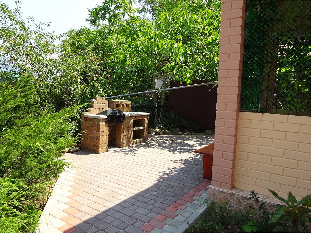 Апартаменты расположены в рядом стоящем здании на первом этаже с отдельным входом и собственным двориком и мангалом.
