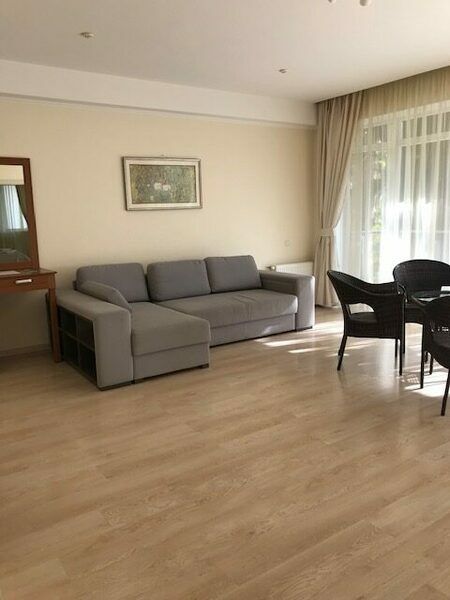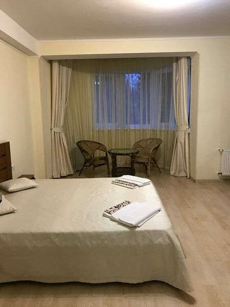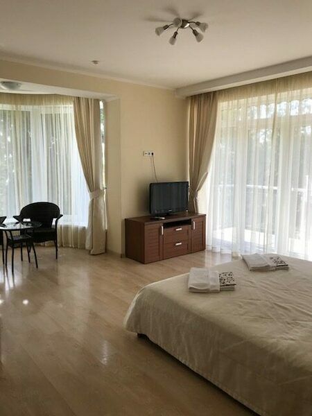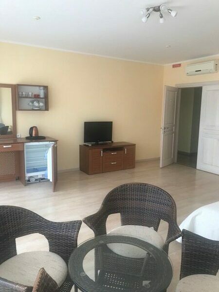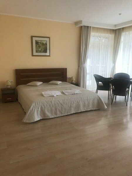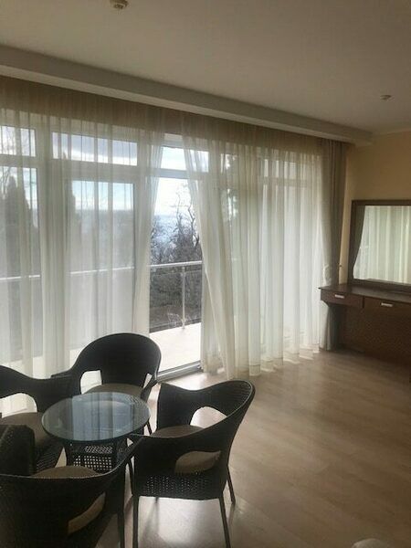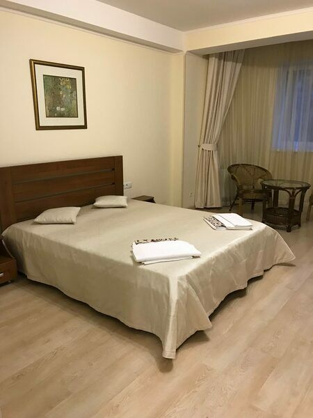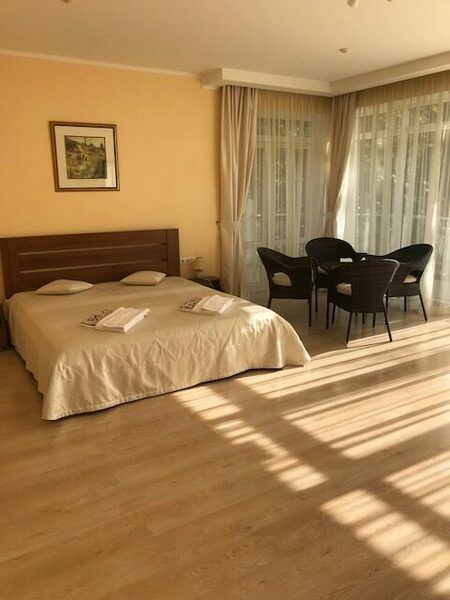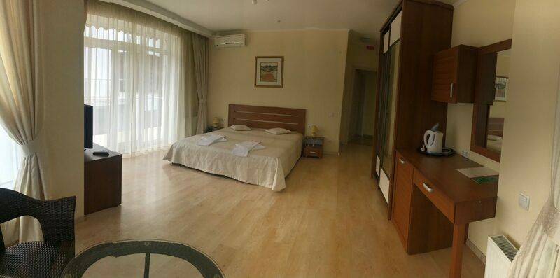 Проживание в номерах разных категорий, питание не входит в стоимость. На территории находится продовольственный магазин, кафе. Гости приезжающие на своем авто, могут пользоваться бесплатными услугами парковки. Пляж галечный, находится на расстоянии ста метров от отеля, имеются шезлонги.