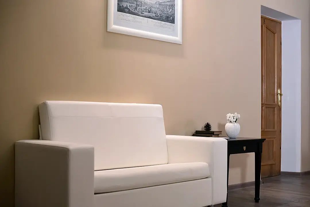 Одноуровневые номера с видом во внутренний дворик, без балкона. Светлая комната с большими окнами и высокими потолками.