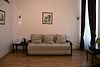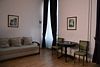 Двухуровневый номер с видом на море, без балкона. На первом этаже диван и кровать (расположена в небольшом алькове), обеденный стол со стульями, шкаф, зеркало, на втором этаже — кровать, комод.