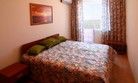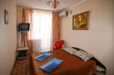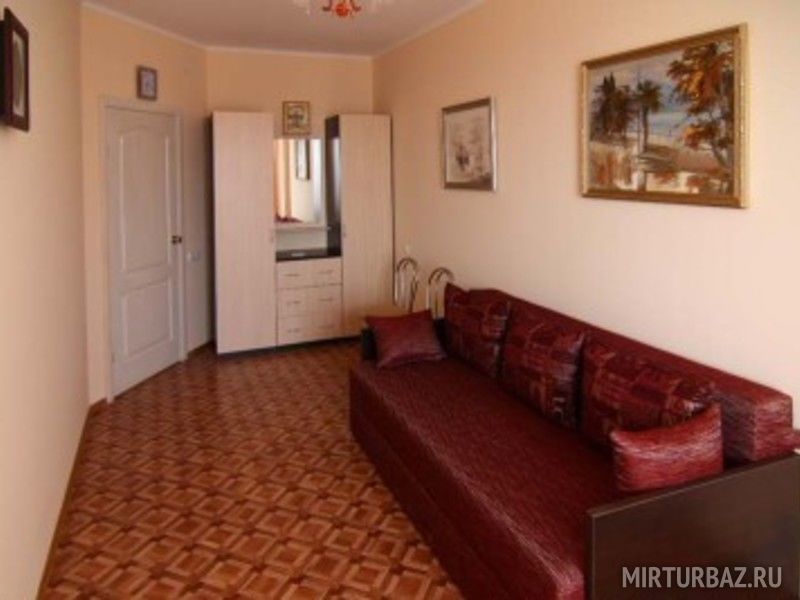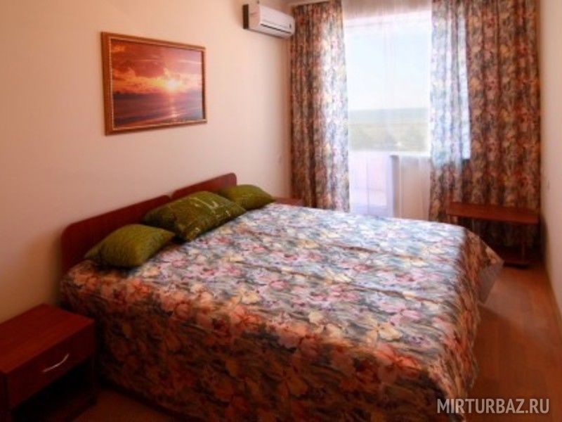 Одна комната - двуспальная кровать, платяной шкаф, ТВ, вторая комната - большой раскладывающийся диван, платяной шкаф, кондиционер, в 3-ей комнате двуспальная кровать 1,4м., шкаф для белья, кондиционер. В номере так же холодильник, чайник, чашки для напитков, стиральная машина, гладильная доска, утюг, большой балкон с видом на море.