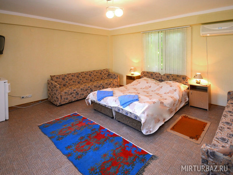 В номерах созданы все условия для комфортного отдыха. Все номера оборудованы холодильником, телефоном, кабельным телевидением, кондиционером, душ и туалет в номере. На территории есть удобная парковка. При гостевом доме работает уютное кафе с широким выбором блюд и напитков. По желанию, можно заказать сауну.
