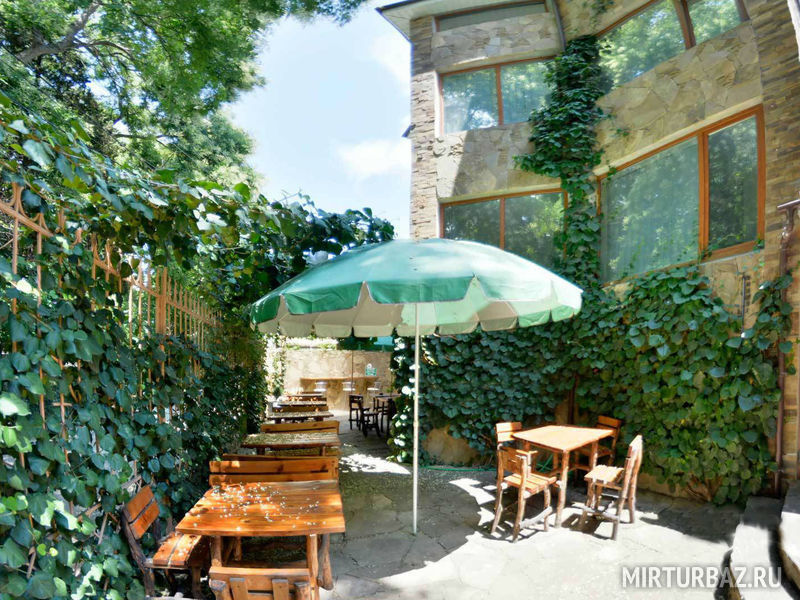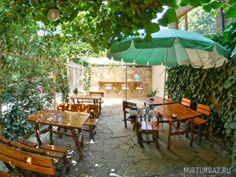 Летнее кафе на свежем воздухе с собственным баром порадует многих гостей.