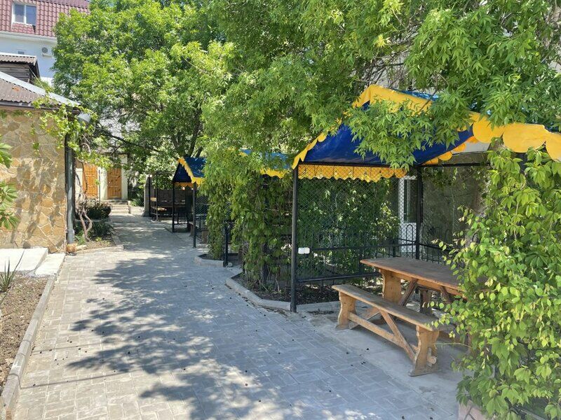 На территории организована небольшая кухонная зона, оборудованная техникой: есть с микроволновки и электроплиты, для любителей шашлыков предусмотрен мангал. Для детей в гостевом доме организована игровая площадка с качелями, а автовладельцы смогут оставить свою машину на крытой охраняемой парковке.