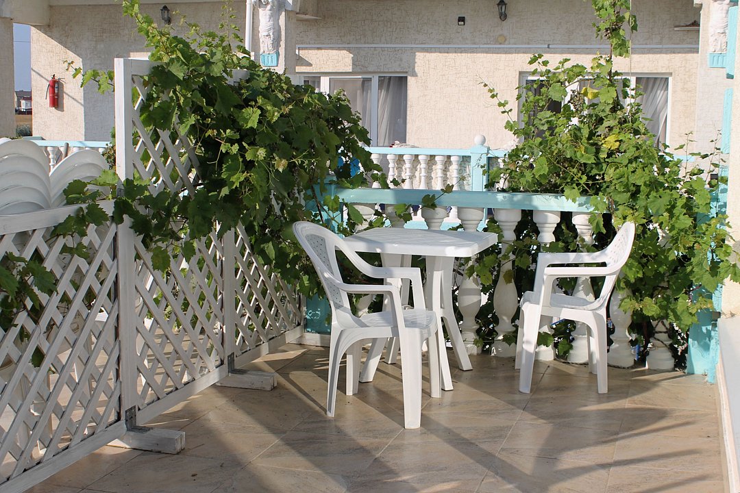 Хочу заметить, что данный пансионат находится примерно в 50 метрах от побережья, три этажа с ухоженными, приличными номерами, облагороженной территорией, плюс хозяева построили кафе, в котором учитываются особенности вашего питания, наше дите питалось абсолютно другим набором блюд, т.к. многое нельзя кушать, в отличие от нас, трехразовое горячее питание, а также повар - Лиля баловала нас отличными десертиками, особенно блинчик с дрессингом, ммм...Вкуснятина :-) Также возможность заказать блюдо,которое предпочитаете вы, отведать божественный шашлык на мангале, рыбку на гриле или же крылышки, в общем, все, что душе угодно. Дошли до персонала! Хозяева и рабочий коллектив подобрался очень отзывчивый, вежливый, все молодцы и работают на качество, хозяева не боятся никакой работы, очень стараются,чтобы все чувствовали себя в комфорте и уюте, а также всегда с улыбкой и создается приятная атмосфера вокруг!