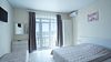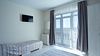 телевизор, Wi-Fi, холодильник, кондиционер, фен, душевая кабина, двуспальная кровать, односпальная кровать, стулья, шкаф для одежды, вешалки, зеркало, комод, чайник, унитаз, раковина, душ, вид на море, плиточное покрытие, стаканы, стол, туалет, сушилка для белья, москитная сеткаВ номере
