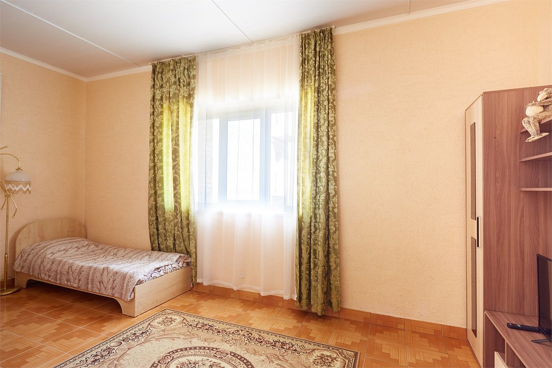 Однокомнатные номера для дружной семьи на 1-2 этажах. Оборудованы двуспальной кроватью и двумя односпальными. Телевизор, холодильник, санузел с душевой кабиной, кондиционер, Wi-Fi. Номер предназначен для проживания четырех человек. Возможна установка дополнительно детской кроватки, по согласованию.Услуги и удобства