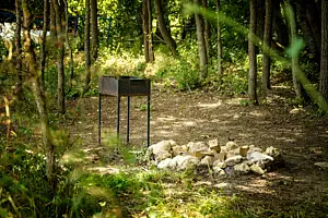Расположена в тени леса на берегу небольшой речки. Зона оборудована мангалами, также есть столики и лавки для удобного размещения. Вам не нужно привозить свои угли или ходить в лес за хворостом, т.к. вы можете приобрести их у нас.