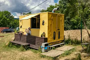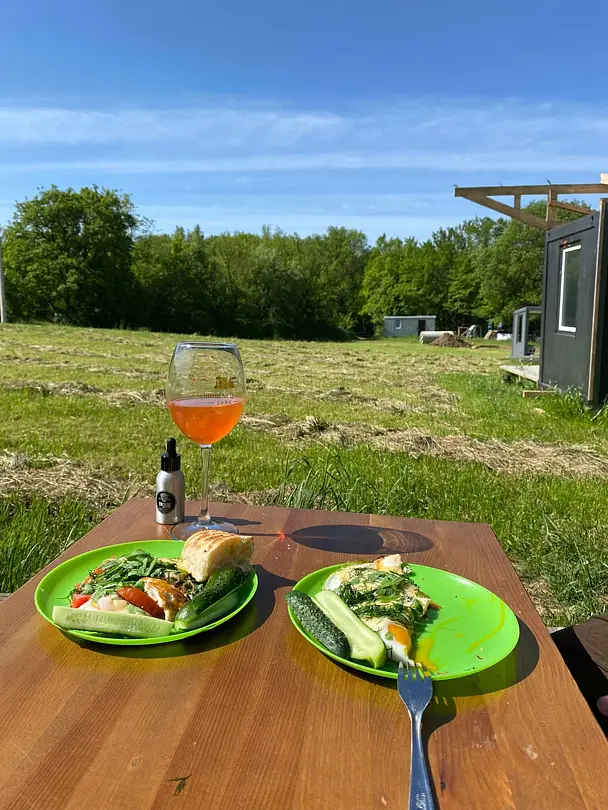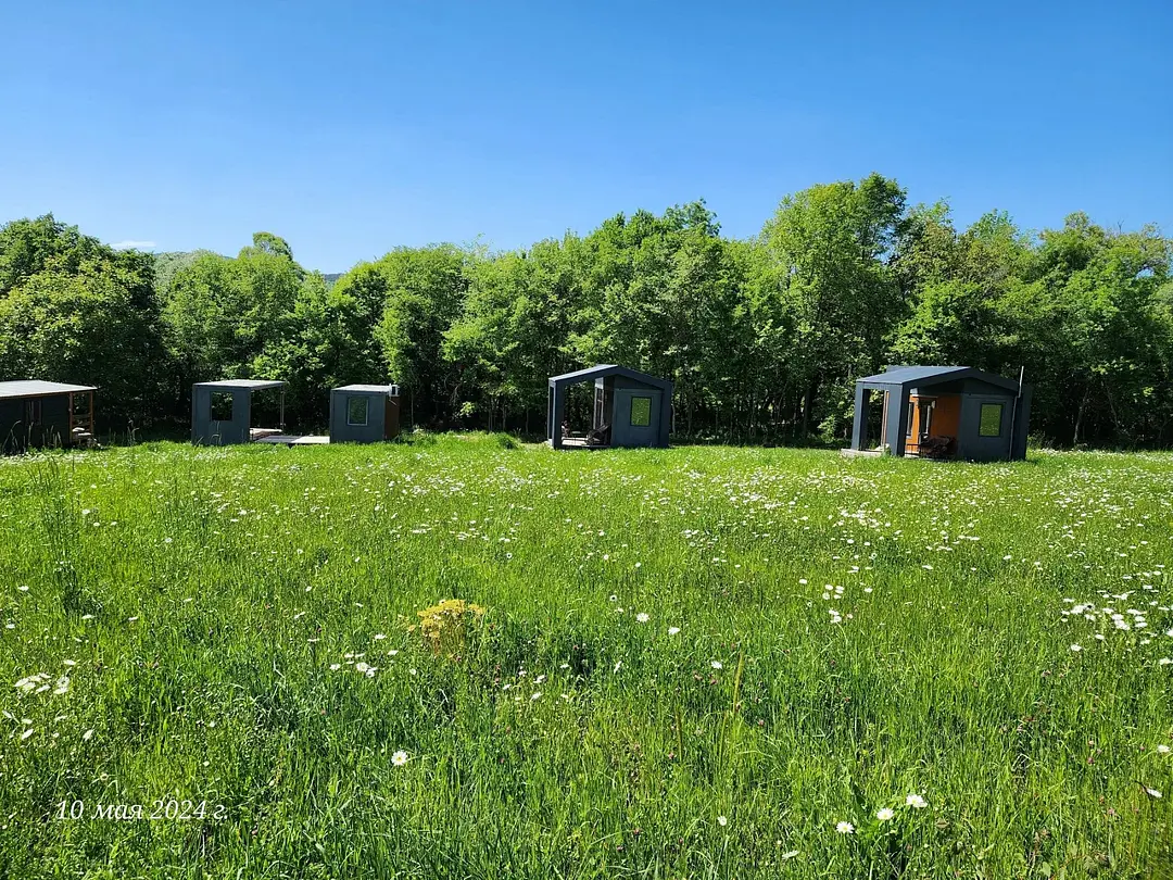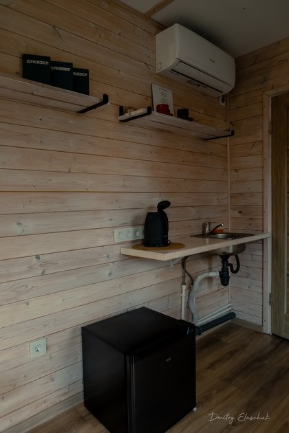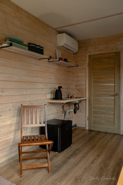 - кружки, тарелки, столовые приборы, средство для мытья посуды (кухня в домике не предусмотрена, есть фудтрак на территории и доставка из кафе);