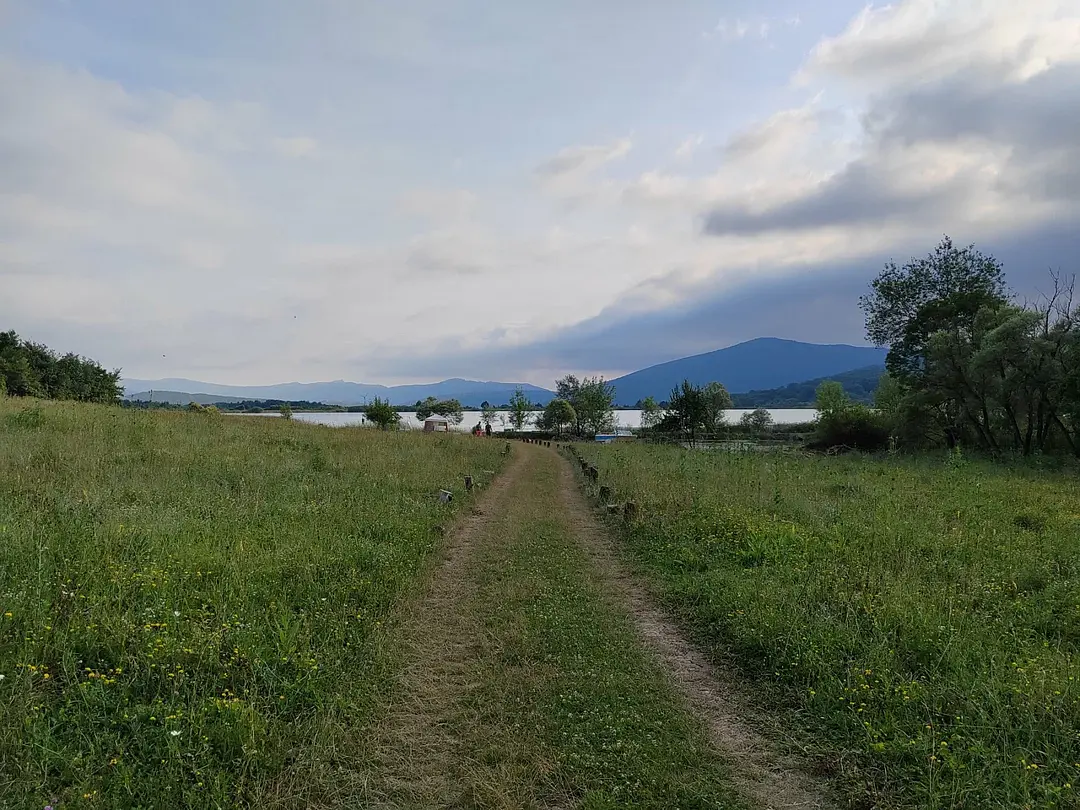 Рядом горное озеро.