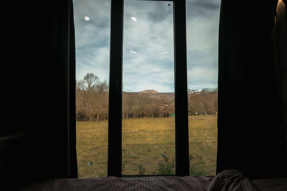 Домик в лесу в живописной Байдарской долине. Панорамные окна с видом на лес, ночное звёздное небо.