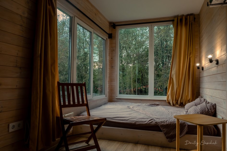 - аанорамные окна: Наслаждайтесь потрясающим видом на окружающий лес. Красота природы сделает ваш отдых ещё более приятным и расслабляющим;