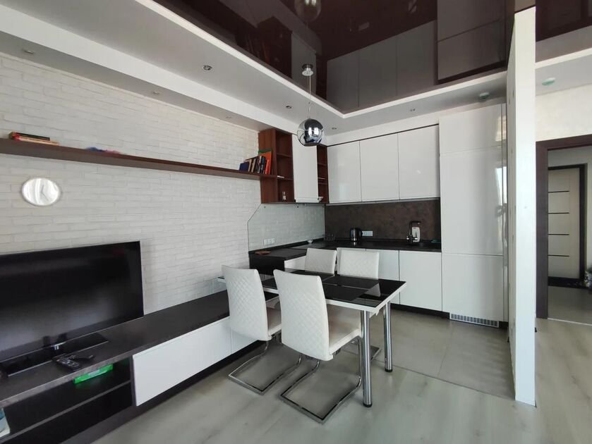 - кухня-гостиная с обеденной зоной на 4 человека и раскладным диваном (на 2 человека). Постельное белье предоставляется;