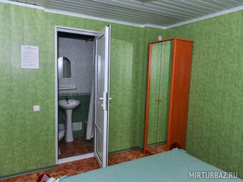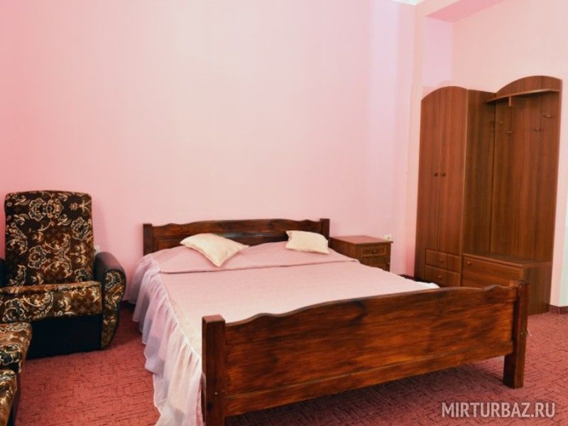Достаточно просторный однокомнатный номер. Номер оборудован двуспальной кроватью, шкафом, тумбочкой, креслом. Есть санузел с душем.