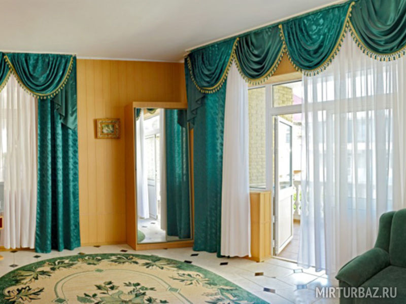 Уютный номер меблирован двуспальной кроватью, прикроватными тумбами, светильниками, шкафом, журнальным столиком, комодом. В номере есть отдельная ванная комната с душем.