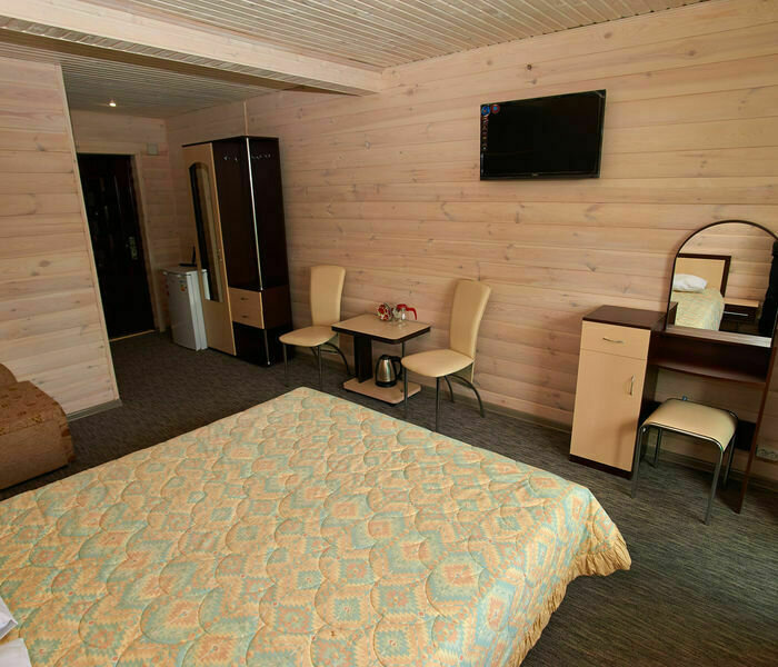 Номера гостевого дома отлично подойдут желающим отдохнуть в тихой и домашней обстановке. К услугам постояльцев просторные комнаты с телевизором и индивидуальной душевой. Также установлен шкаф для одежды, стол, стулья, а в некоторых номерах предусмотрена собственная мини-кухня.