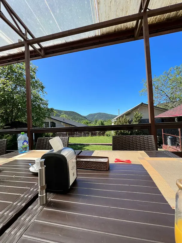 Короткий отпуск с друзьямиУзунджаПобывали в Байдарской долине, о гостевом доме "Узунджа" ничего не знали. Находится в потрясающе красивом месте, сам дом и территория супер-премиум! Оказалось, его владелец супер шеф-повар с многочисленными регалиями! В ресторане можно купить изумительные сыры, вкуснейшее сыровяленое мясо кабанчика и оригинальные напитки! Семья Софрина Ильи Сергеевича очень приветлива, туда хочется приехать вновь! Очень рекомендую💯👌