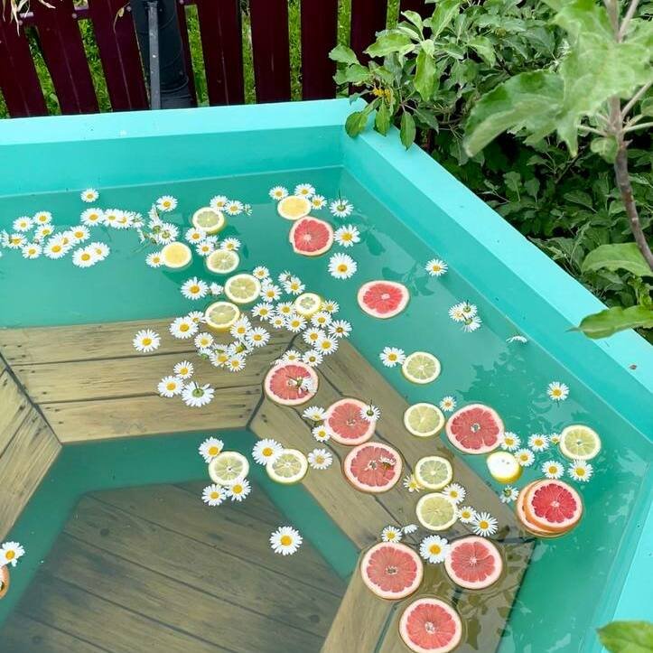 Расслабляющий банный чан с горячей водой на свежем воздухе.
