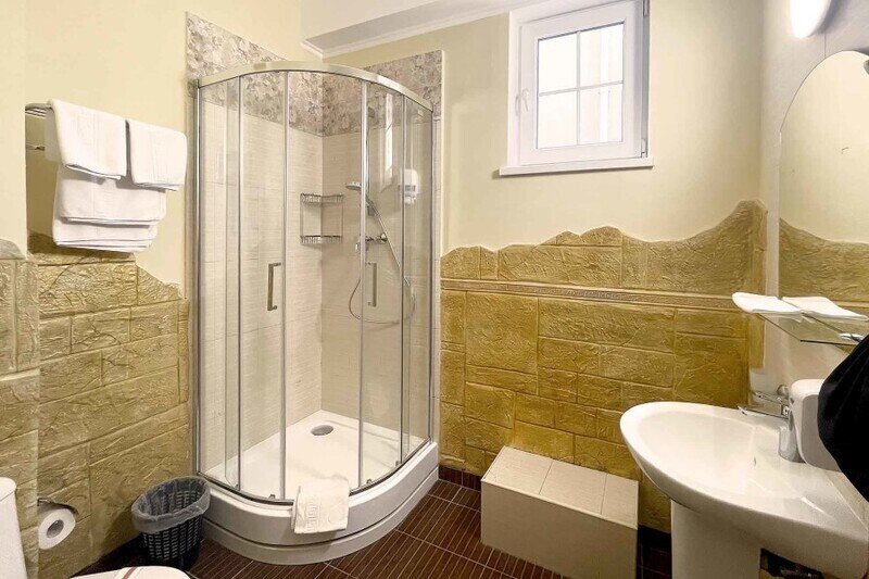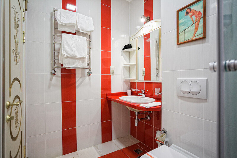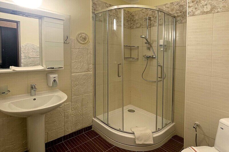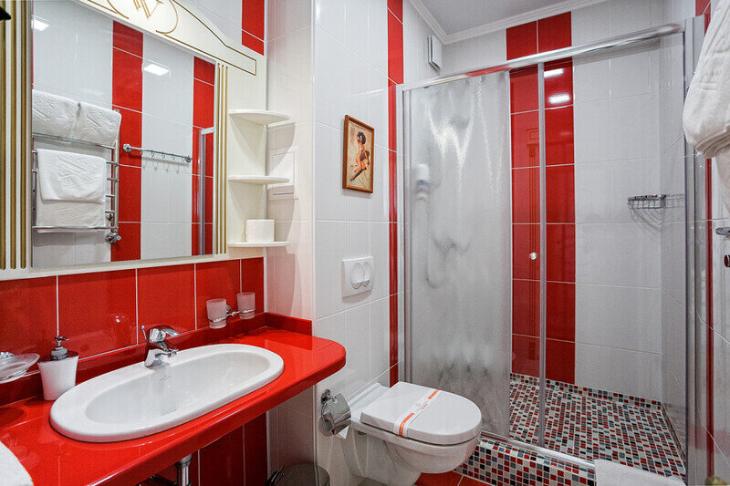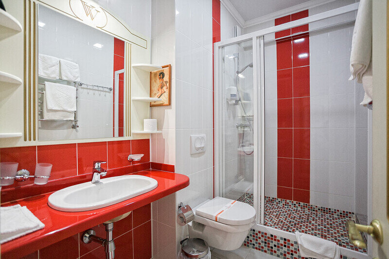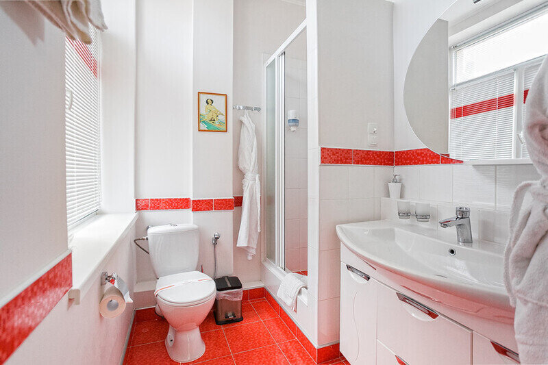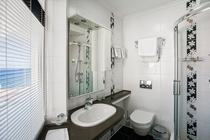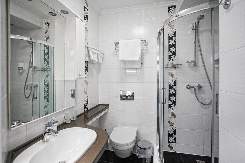 Санузлы оборудованы душевой кабиной, умывальником, сантехникой Villeroy&Boch. Подача холодной и горячей воды – круглосуточная.