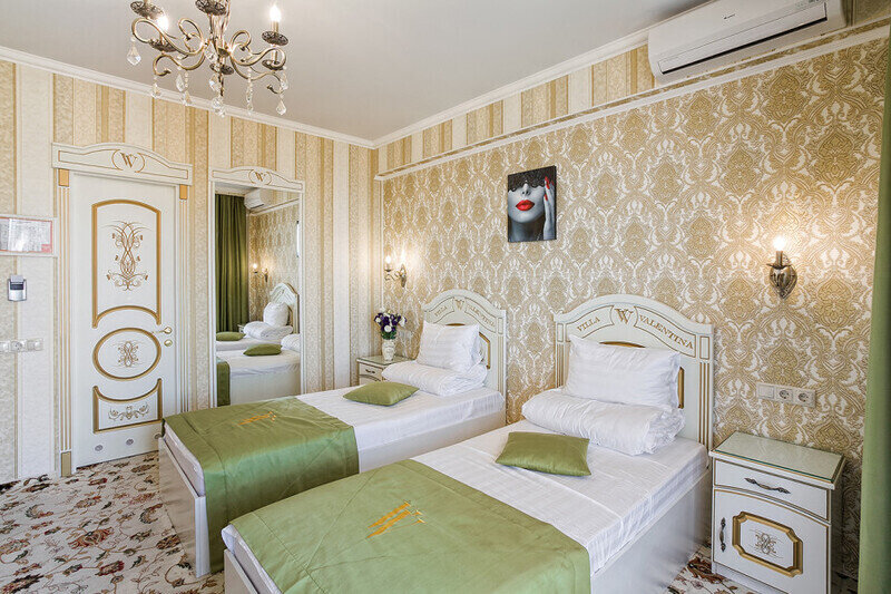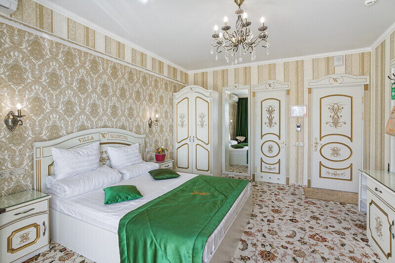 В жилом фонде комплекса три здания. Номера отеля имеют разные категории, от «Стандарт» до «VIP». Индивидуальный дизайн мебели, просторная площадь, особый колорит — визитная карточка виллы. Каждый номер оборудован отдельным санузлом с душем. Под рукой современная бытовая техника. Доступ в Wi-Fi возможен на территории отеля.