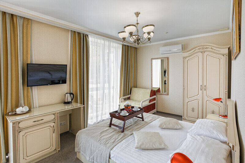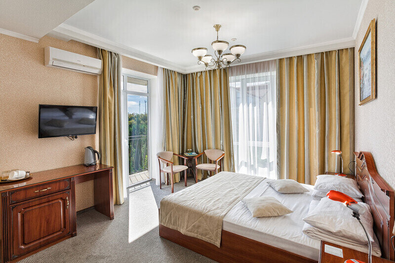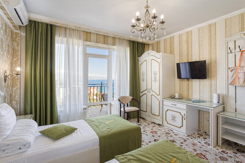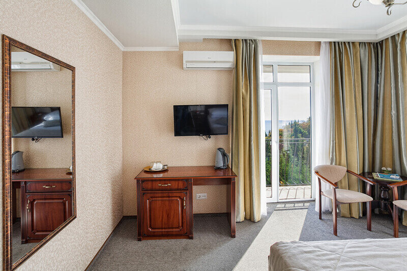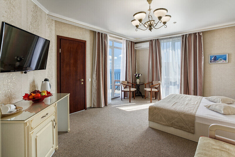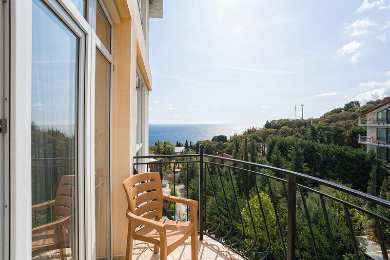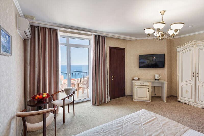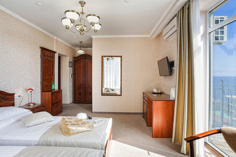 Номера данной категории с балконом и видом на море. Выполнены в классической цветовой гамме. Это отличный выбор для комфортного отдыха вдвоем или втроем.