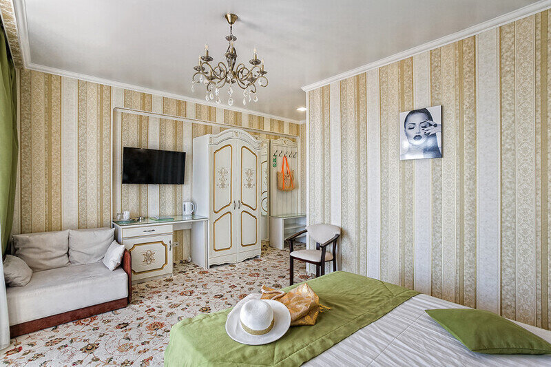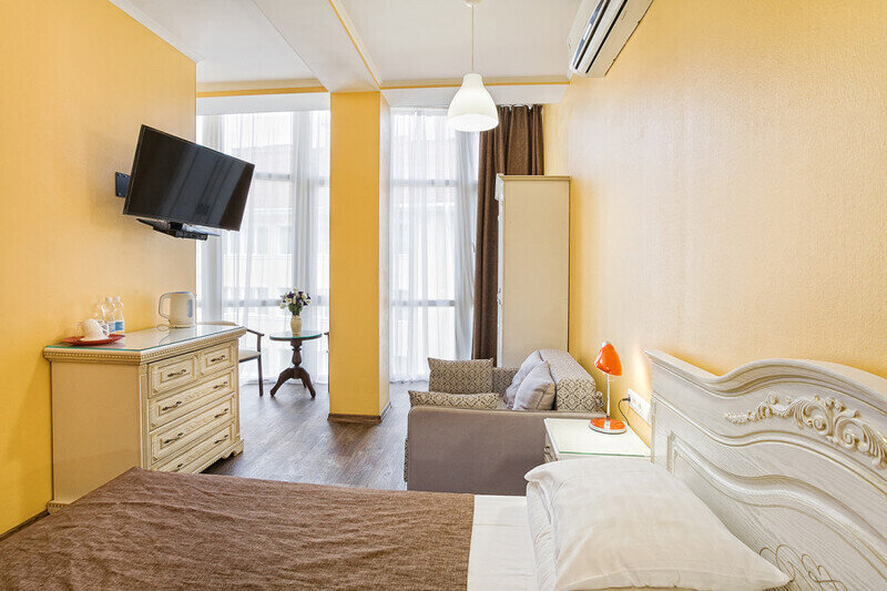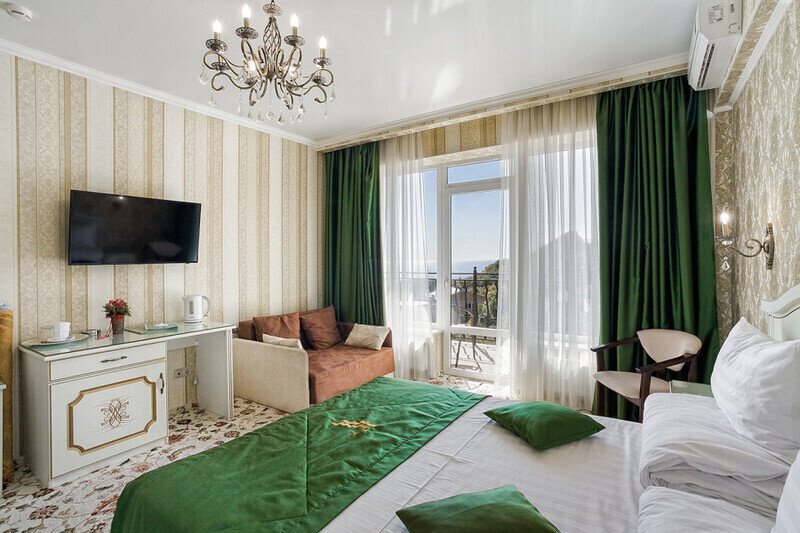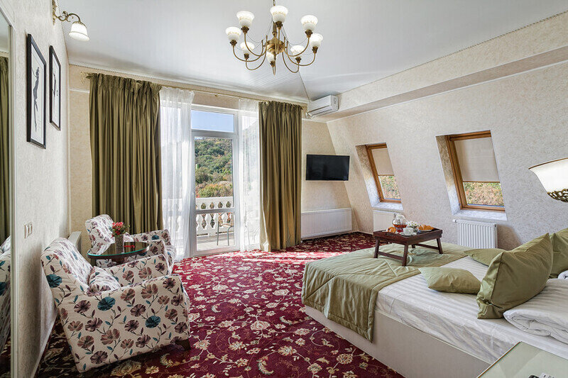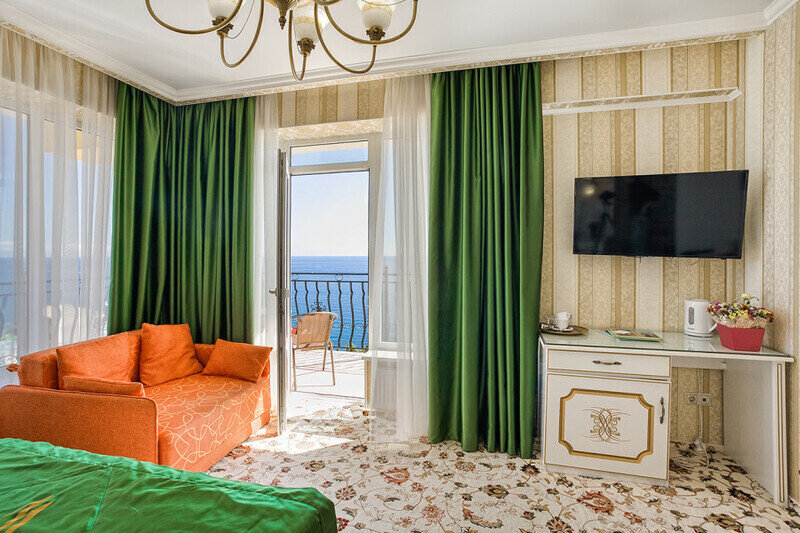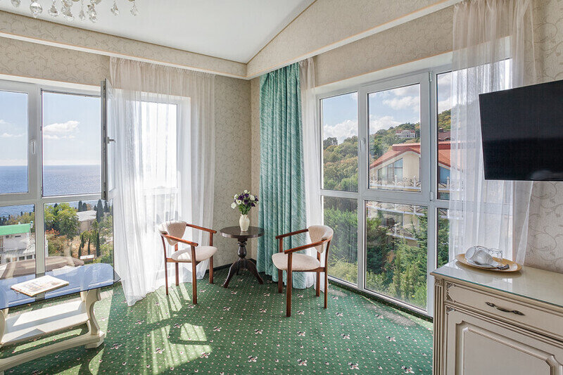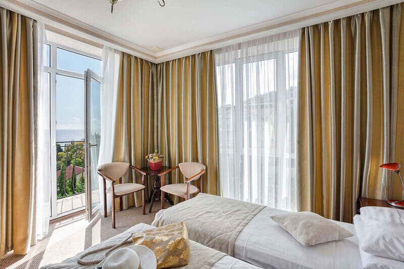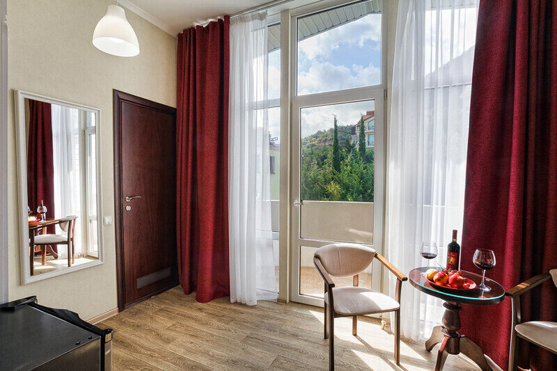 Номера данной категории с балконом и видом на море. Выполнены в классической цветовой гамме. Это отличный выбор для комфортного отдыха вдвоем или втроем.