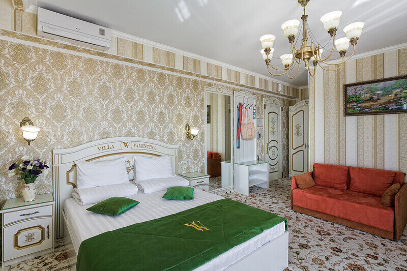 Отель «Вилла Валентина» находится в Профессорском уголке города Алушта. Его преимущество — сочетание уединения с близостью к курортной инфраструктуре города. От отеля легко добраться к дельфинарию, музею миниатюр, аквапарку «Миндальная роща», магазинам, кафе и сувенирным лавкам.