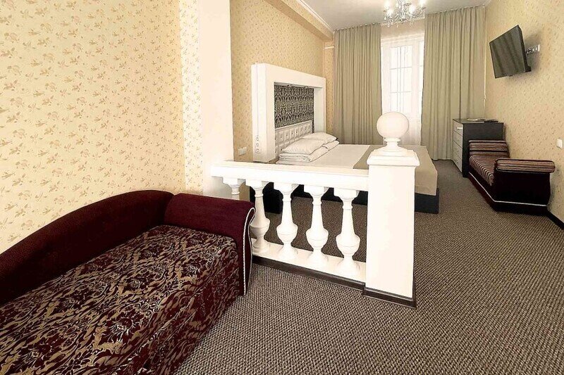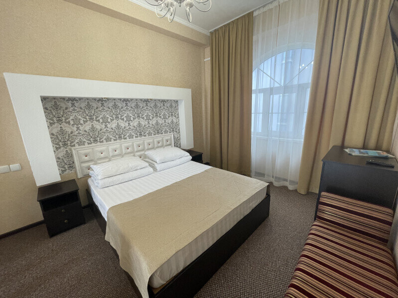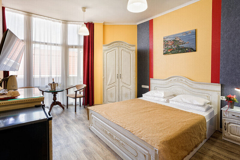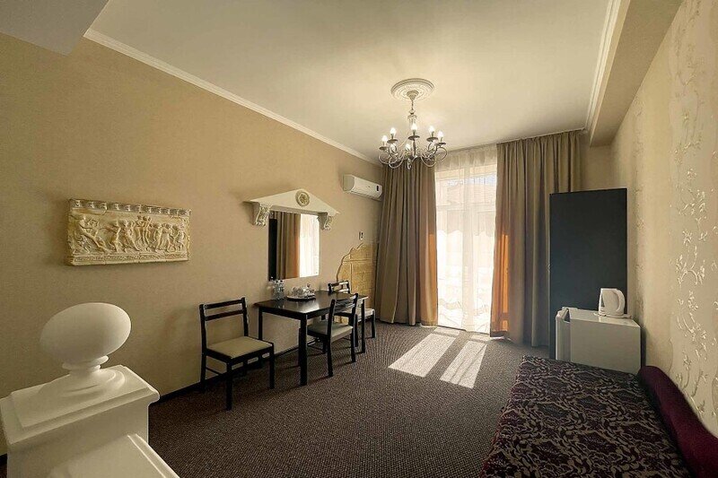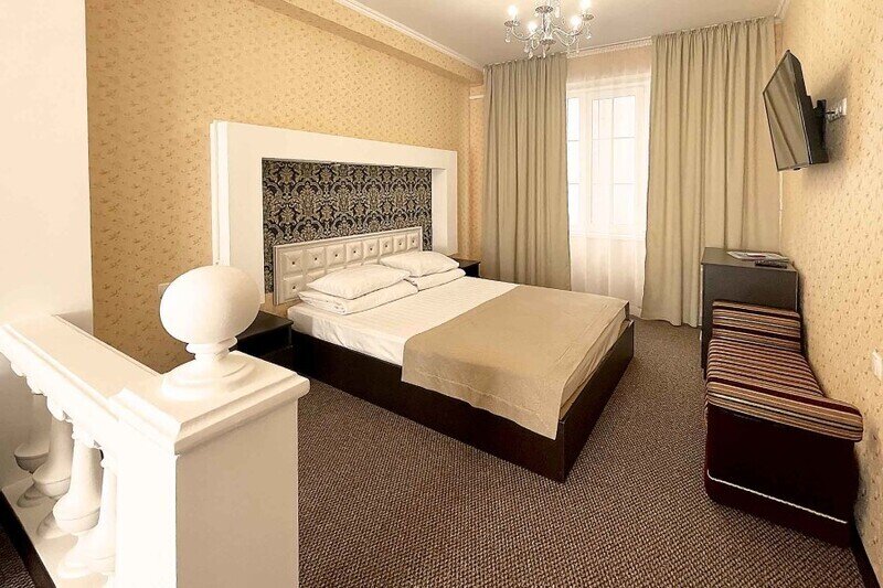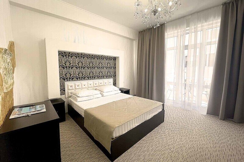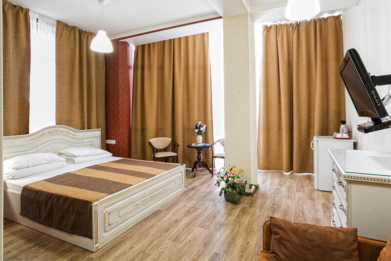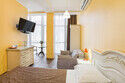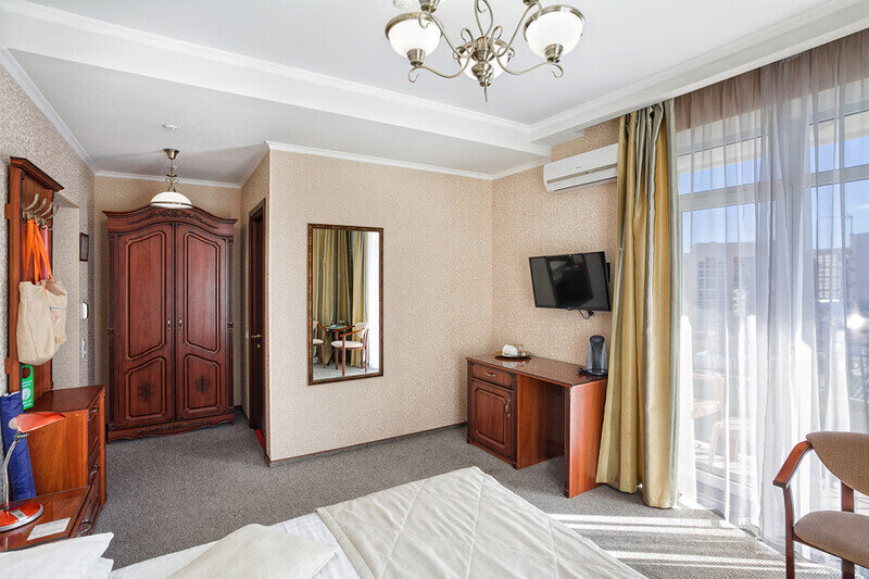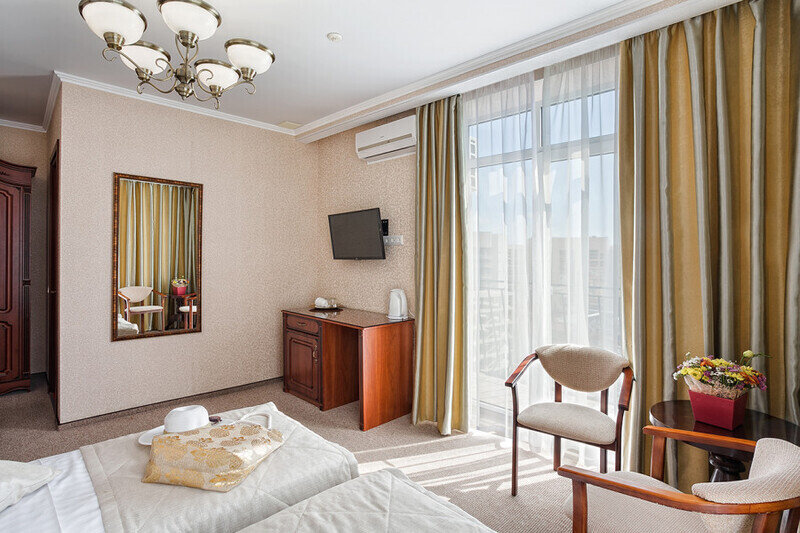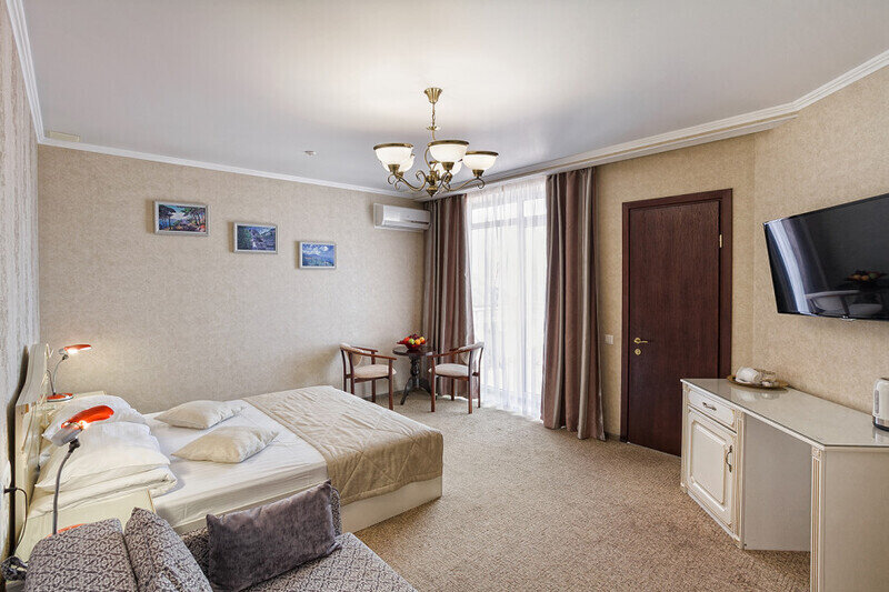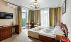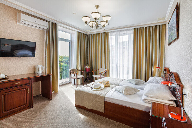 Комфортные номера с большой двуспальной кроватью и балконом прекрасно подойдут для отдыха с ребенком. Дизайн номеров выдержан в спокойной классической цветовой гамме.
