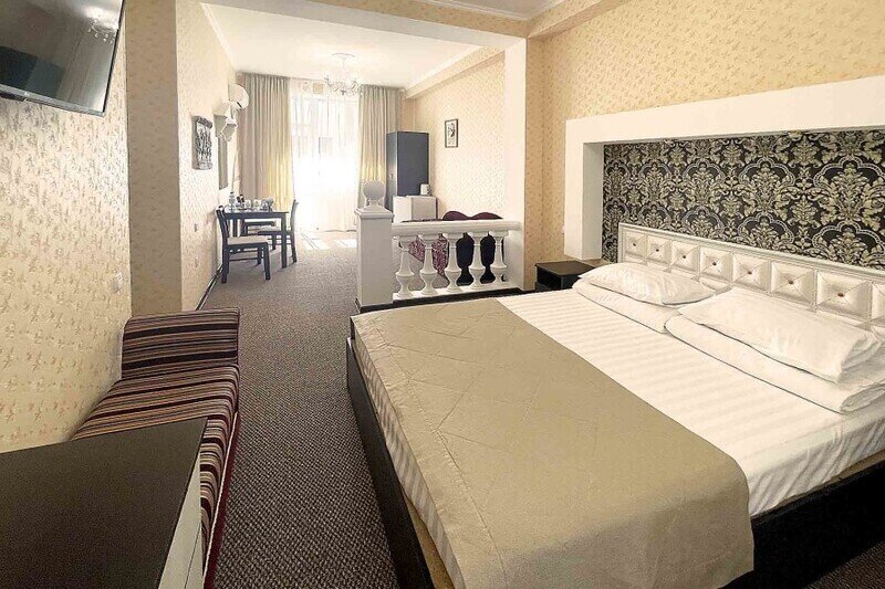 Большие по площади, отлично оформленные двухкомнатные номера, где Вас ожидает уютная спальня и гостиная с выходом на балкон. Семьи часто выбирают данную категорию для отдыха.