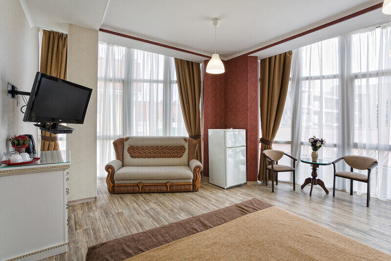 Просторные номера разделенные на спальную и гостиную зоны, с панорамными окнами подарят вам незабываемые моменты отдыха. Отлично подойдут как для отдыха вдвоем, так и для отдыха всей семьей.