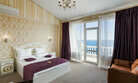 Большие по площади номера с современной мебелью, разделенные на спальную и гостиную зоны, с панорамными окнами или балконом, наполнят Ваш отдых незабываемыми впечатлениями от возможности наслаждаться утренним рассветом на море, не выходя из номера.