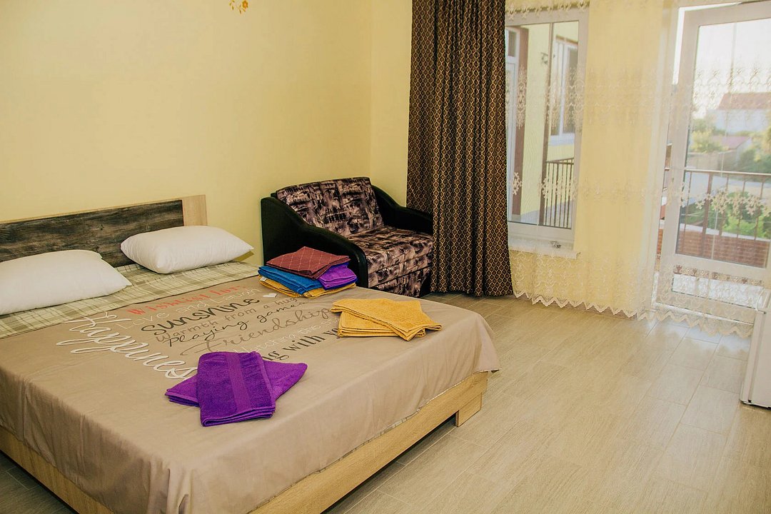 Гостевой дом располагается в 15 минутах ходьбы от центральной набережной Новофедоровки. На которой располагаются кафе, рестораны, бутики и развлечения на любой вкус (как для взрослых так и для детей).