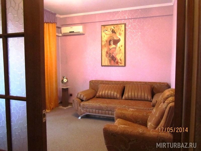 В номере: спутниковое ТВ, кондиционер, холодильник, санузел (душевая кабина, унитаз, умывальник), количество полотенец – 2 на человека. На лоджии - стол, стулья, шезлонги.