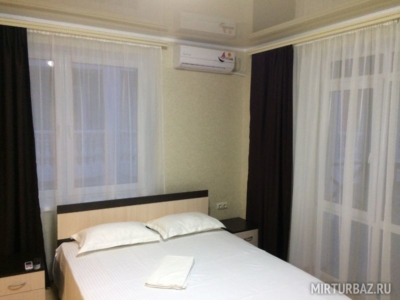 В номере: мягкая мебель, спутниковое ТВ, кондиционер, мини-кухня (холодильник, столовый и чайный сервизы, электрочайник, посуда), санузел (ванная, унитаз, умывальник), количество полотенец – 2 на человека.
