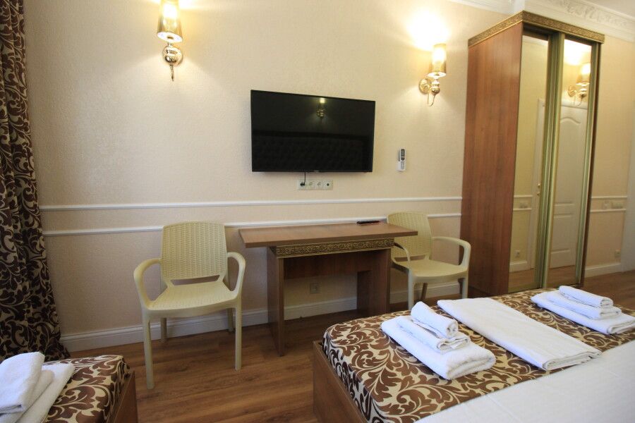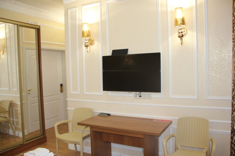 В номере: шкаф-купе, стол обеденный, тумбочка, холодильник, телевизор с плоским экраном, кондиционер, чайник, Wi-Fi. Также есть свой балкончик и санузел.