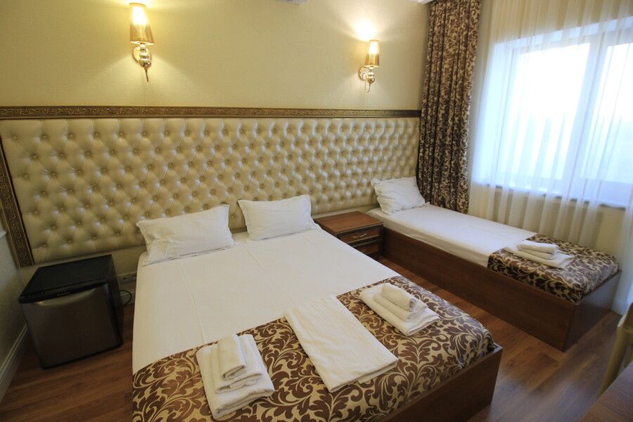 Одна односпальная кровать, одна двуспальная кроватьВ гостиничном номере