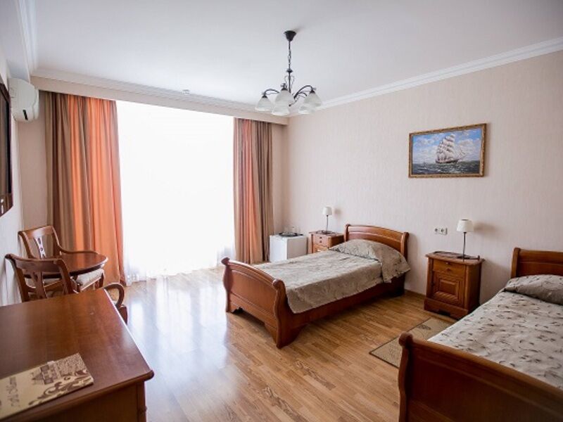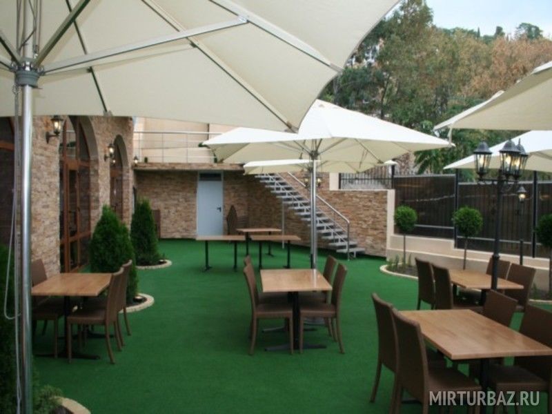 Путешествие с семьейОтель на твердые 4+Отдыхали втроем с годовалым малышом. Кроватка предоставляется, кстати. 5 баллов за сервис, который здесь на очень высоком уровне, включая внимательность и вежливость персонала и готовность помочь с возникающими вопросами и трудностями. Обслуживание номеров, как и сами номера - также твердые пять баллов. Номера просторные, у нас с стандарт со своим не сообщающимся с соседями балконом с видом на гору, биде и большим телевизором. В остальном, стандартный набор всего необходимого. До моря идти близко. На троечку здесь только завтраки, т.к. не отличаются разнообразием. По одной из трёх позиций на выбор, за две недели выбор поменялся один раз, потом поменялся обратно на первый вариант, зато в здешнем ресторане за деньги готовят достаточно вкусно. В общем, есть куда тянуться. Да, кстати, номера расположены на шести этажах, а в отеле есть лифт, что также очень важно если отдыхаешь с маленькими детьми. В целом, все понравилось, поедем в Крым, с высокой вероятностью вернемся сюда.